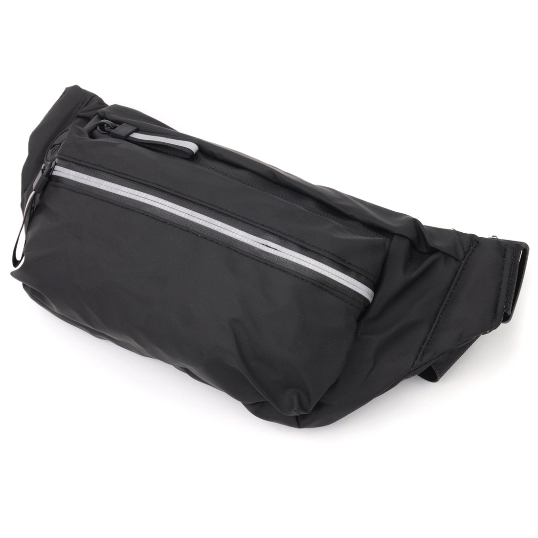 Практичная бананка из нейлона черного цвета. Аксессуар имеет небольшой размер и практичный функционал. Сумка очень легкая и удобная. С бананкой все ваши личные вещи будут под рукой и перед вашими глазами. Аксессуар дополнен качественной фурнитурой и плотной подкладкой. С такой сумкой удобно также ходить на занятия спортом или путешествовать.