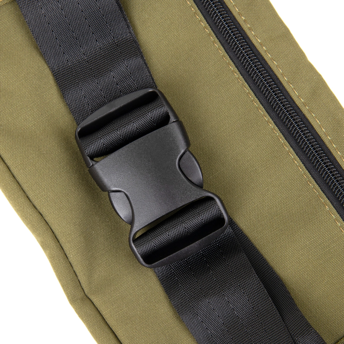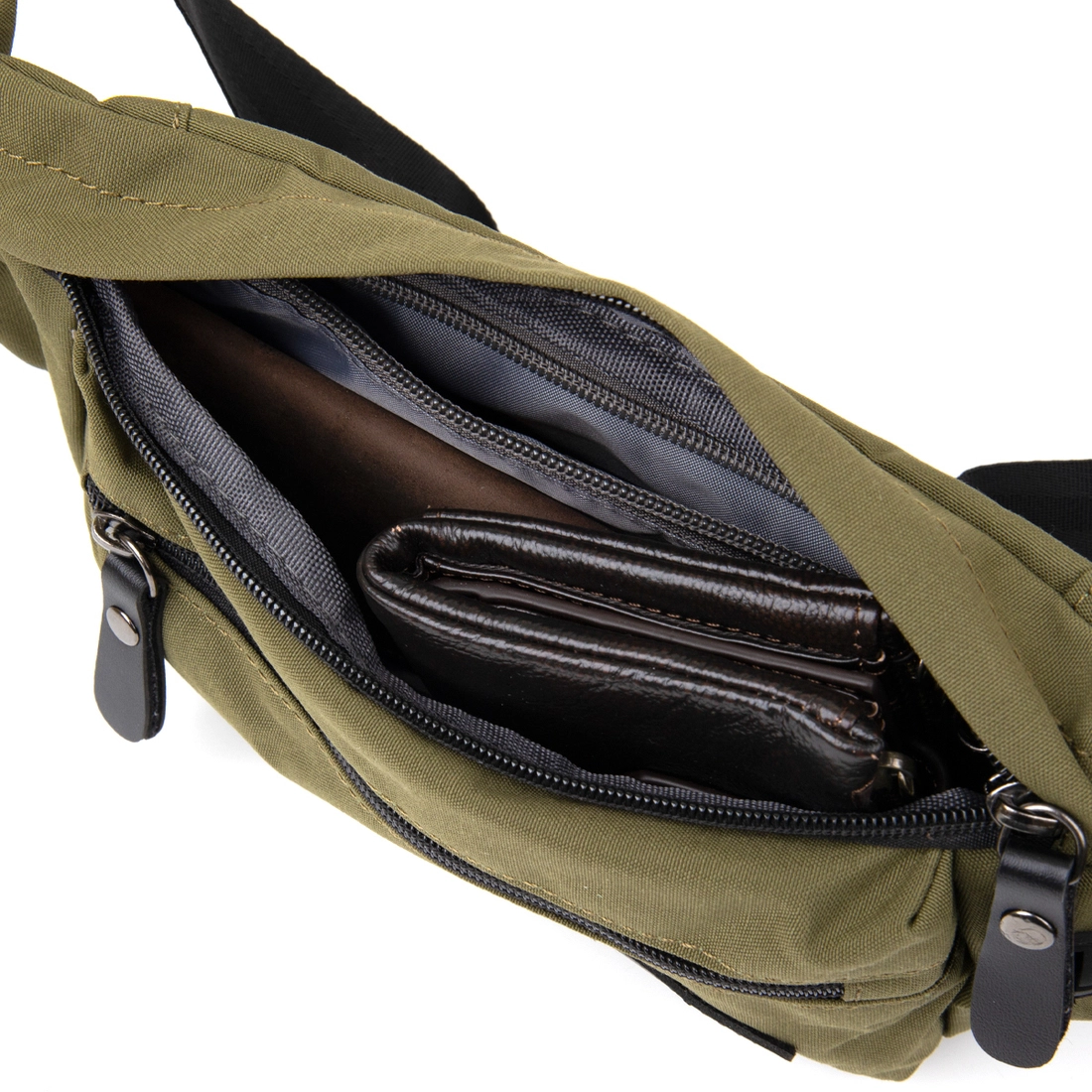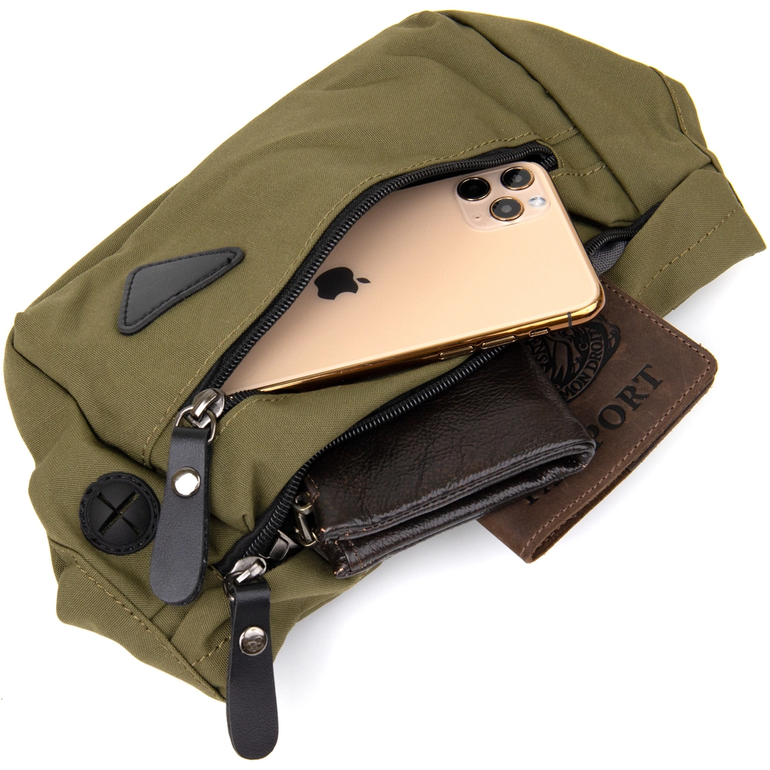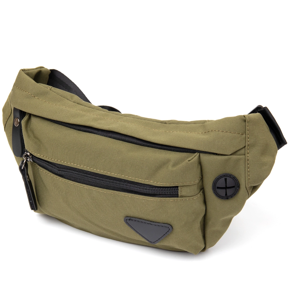 Компактная бананка из нейлона зеленого цвета. Аксессуар имеет