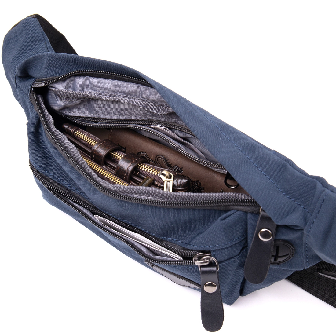 Компактная бананка из нейлона синего цвета. Аксессуар имеет