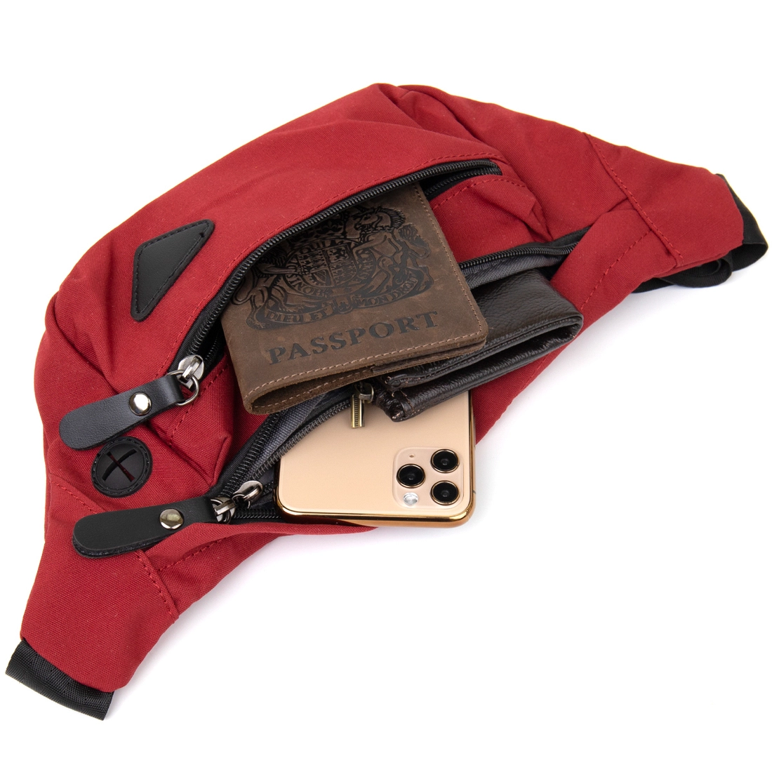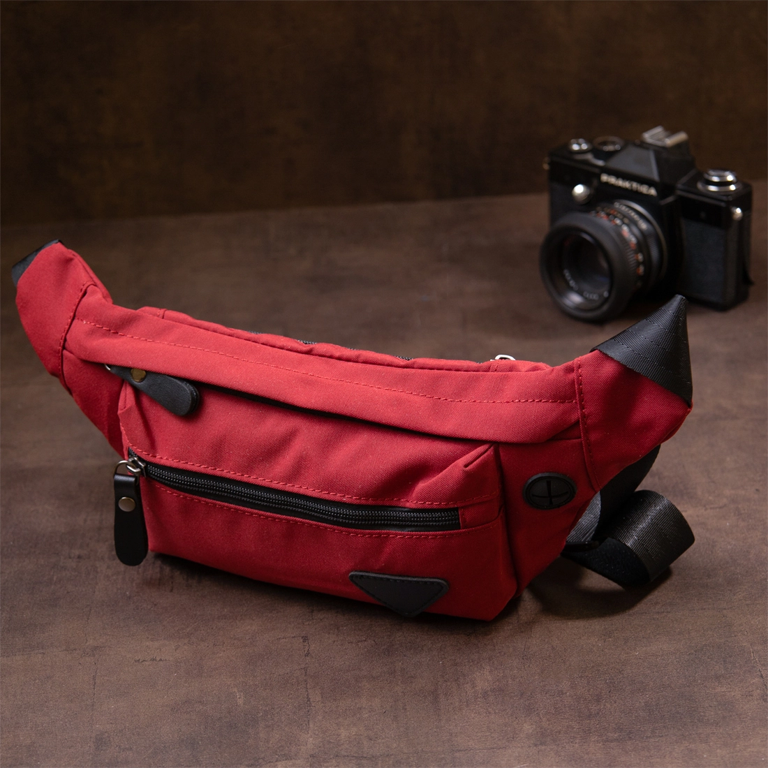 Компактная бананка из нейлона красного цвета. Аксессуар имеет