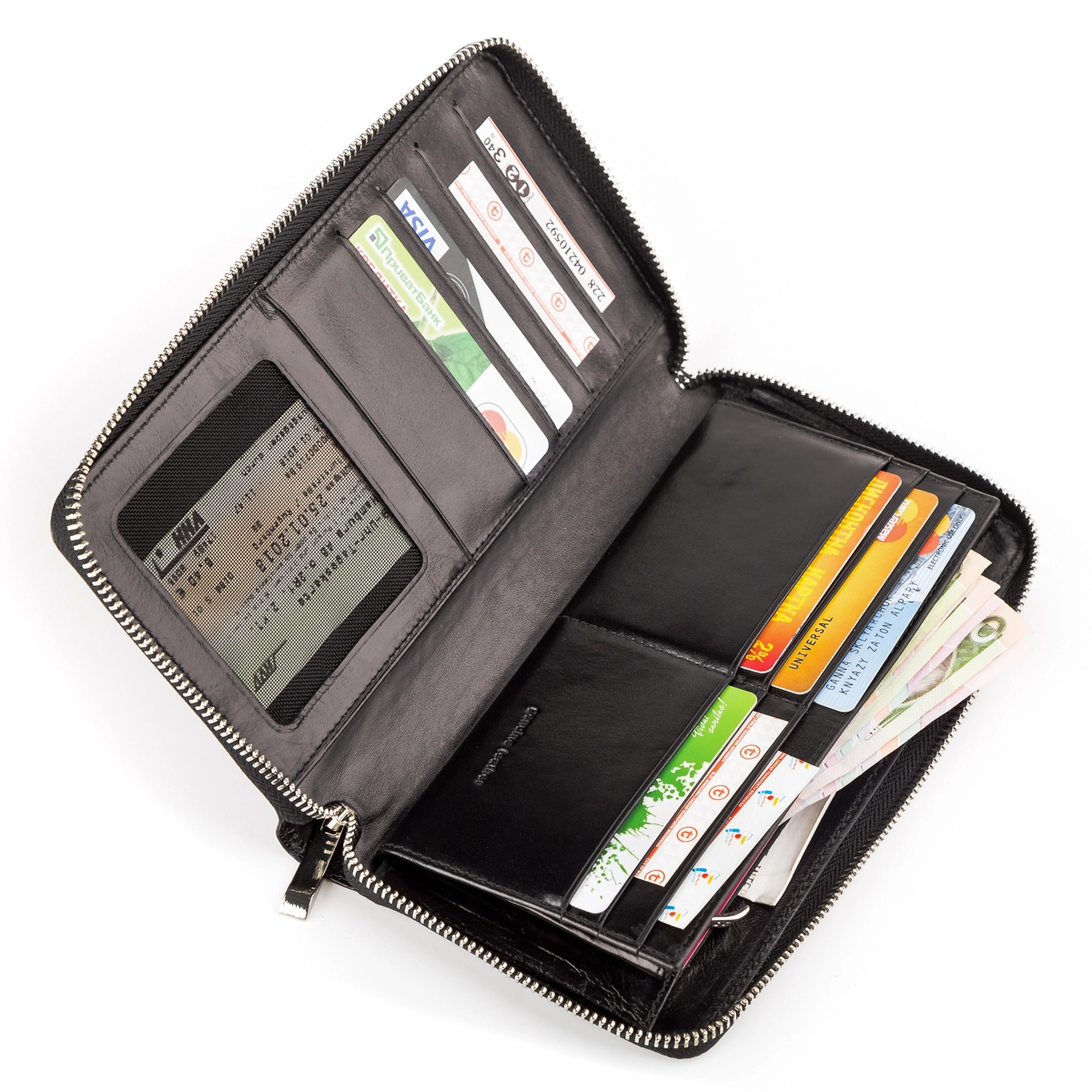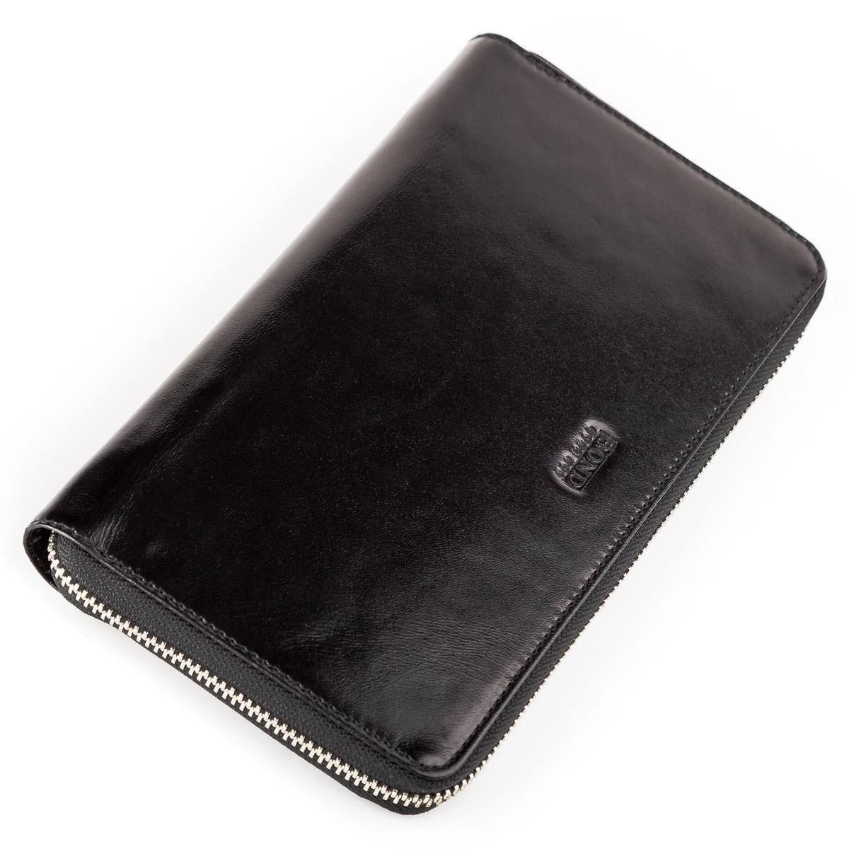 гладкой кожи. Такой кошелек очень вместительный, в него легко