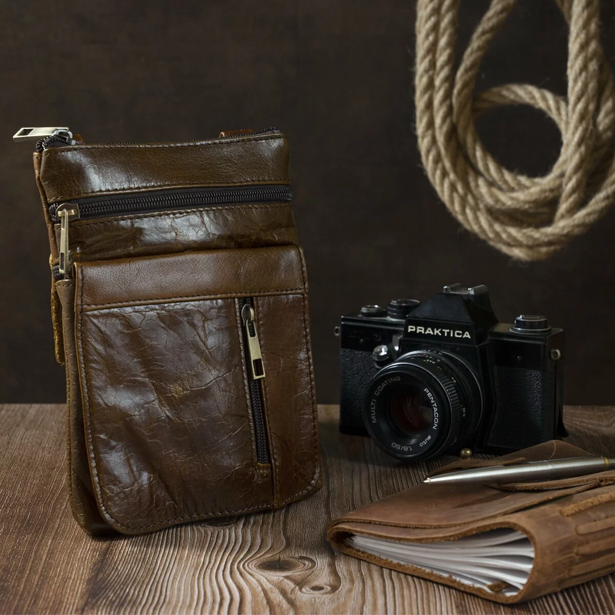 Компактная мужская баресетка из натуральной кожи коричневого цвета.