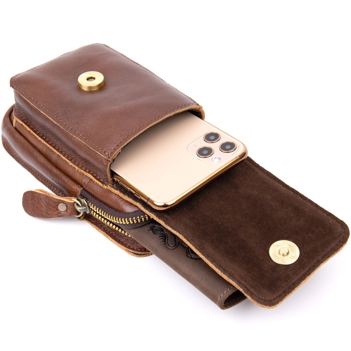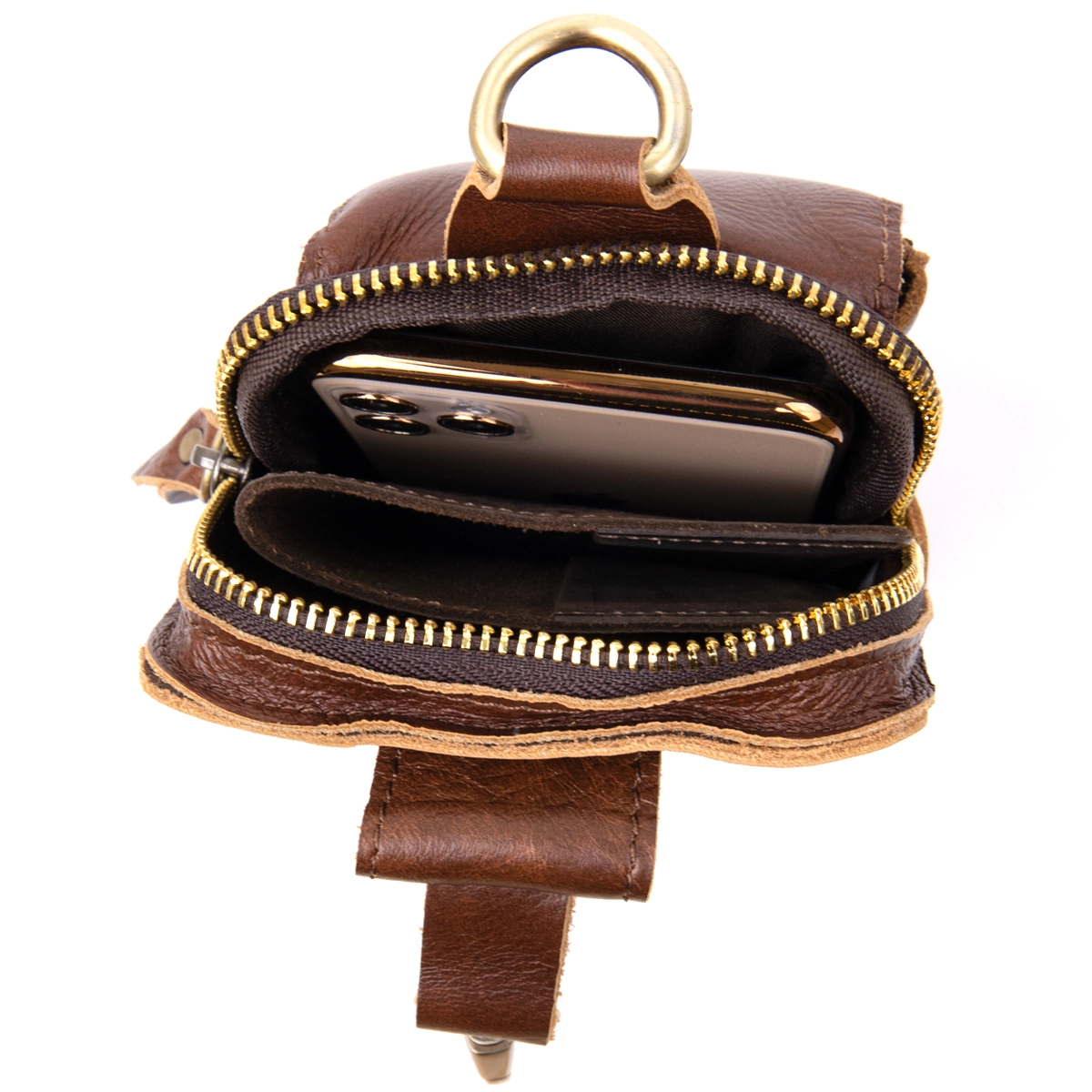 коричневого цвета. Аксессуар можно носить на поясе за петельку на