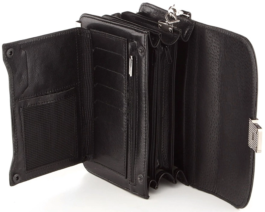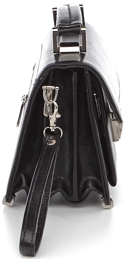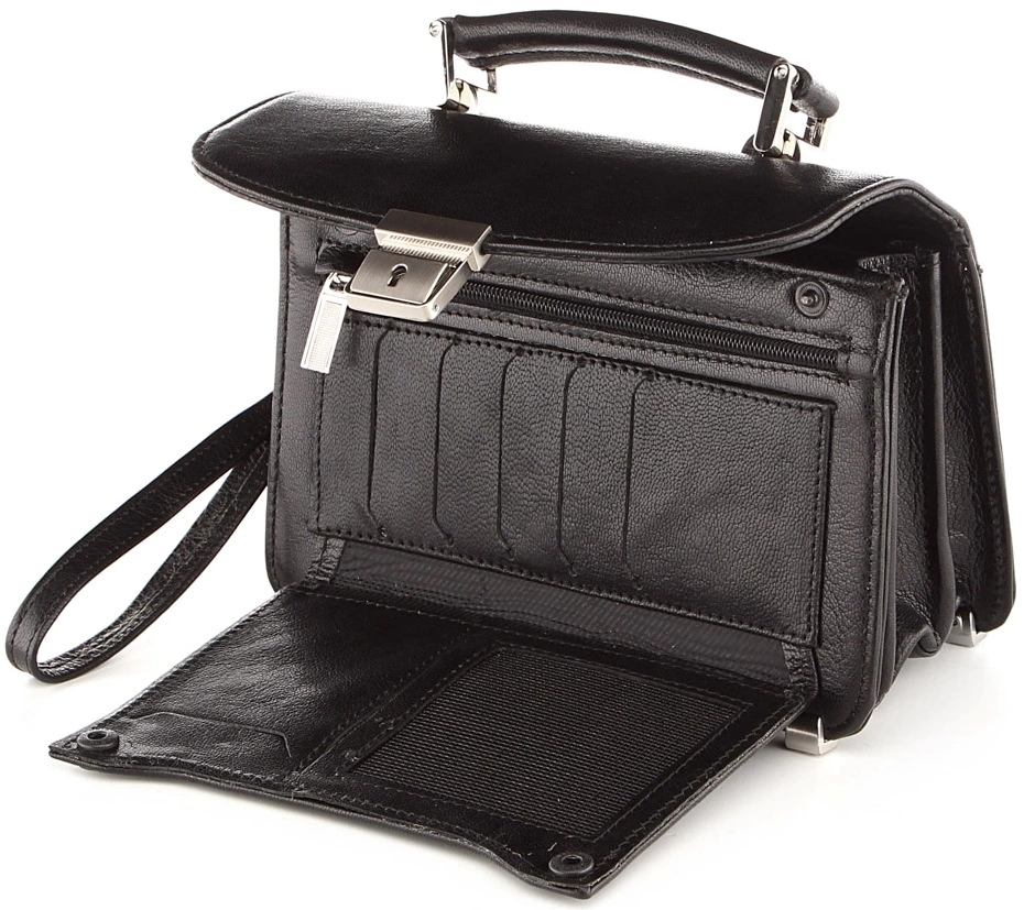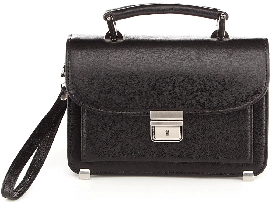 Небольшая, современная барсетка из натуральной кожи черного цвета. Несмотря на свои компактные размеры аксессуар весьма удобен, вместителен и многофункционален. Цвет фурнитуры: серебро. Высокое качество исполнения вместе с использованием надежной фурнитуры и высококачественной кожи, гарантирует длительный срок службы барсетки.