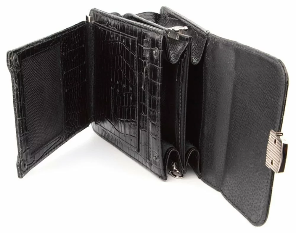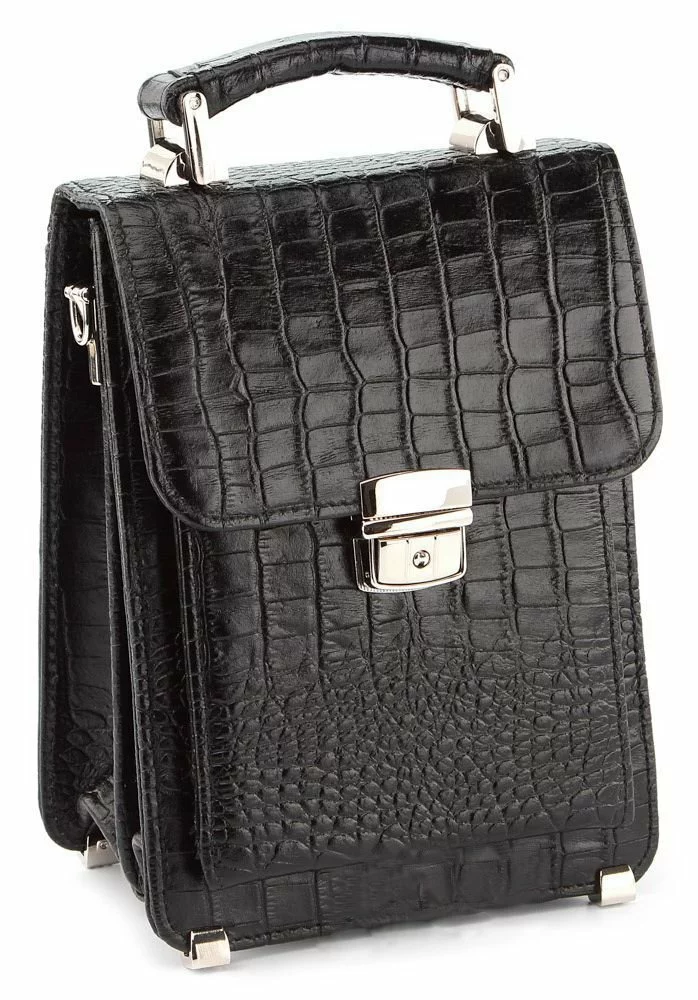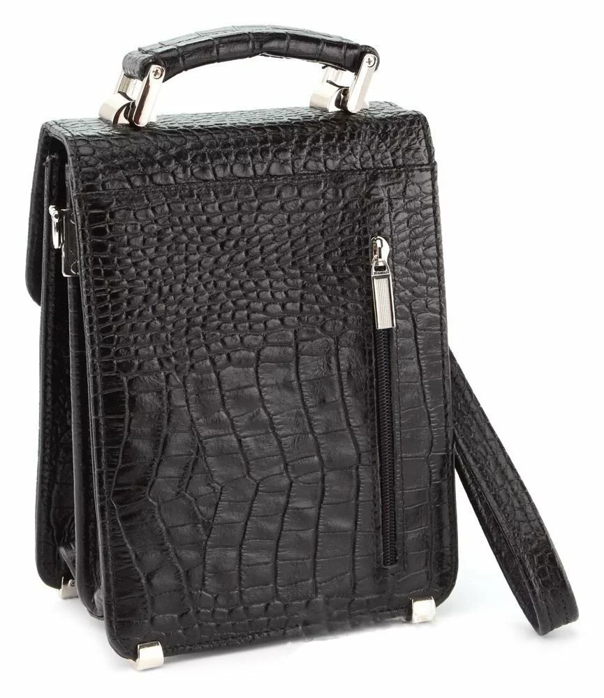 Стильная, удобная и многофункциональная мужская барсетка. Аксессуар выполнен из кожи с фактурой под крокодила, изделия из которой очень популярны в этом году. Данную модель можно переносить в руке, на запястье, а также через плечо. Не мало важным аргументом для покупки данной барсетки является, то что ее можно закрывать на замок (ключ прилагается). Металлические ножки на дне защищают аксессуар от нежелательных царапин.