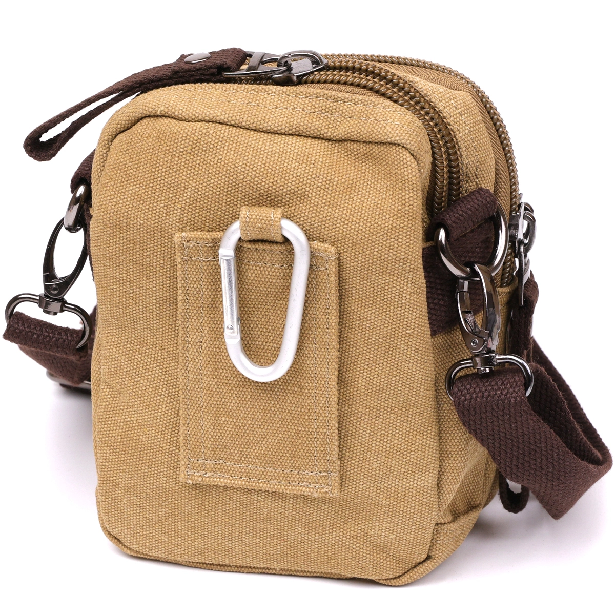 - карабин и петелька на ремень на тыльной стороне;