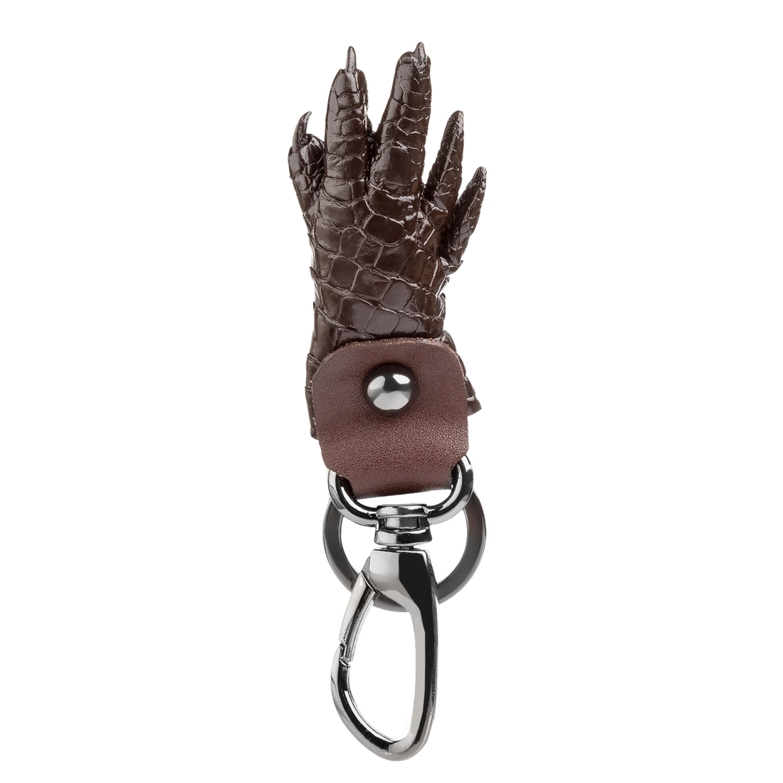 Оригинальный брелок из натуральной кожи крокодила - настоящая лапа рептилии. Для крепления использован надежный карабин темно-серебряного цвета и кольцо для ключей. Изделие подходит, как и для ключей, так и как аксессуар для сумочки или рюкзака.