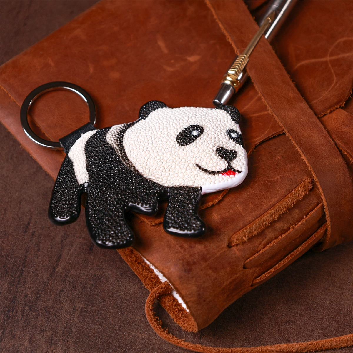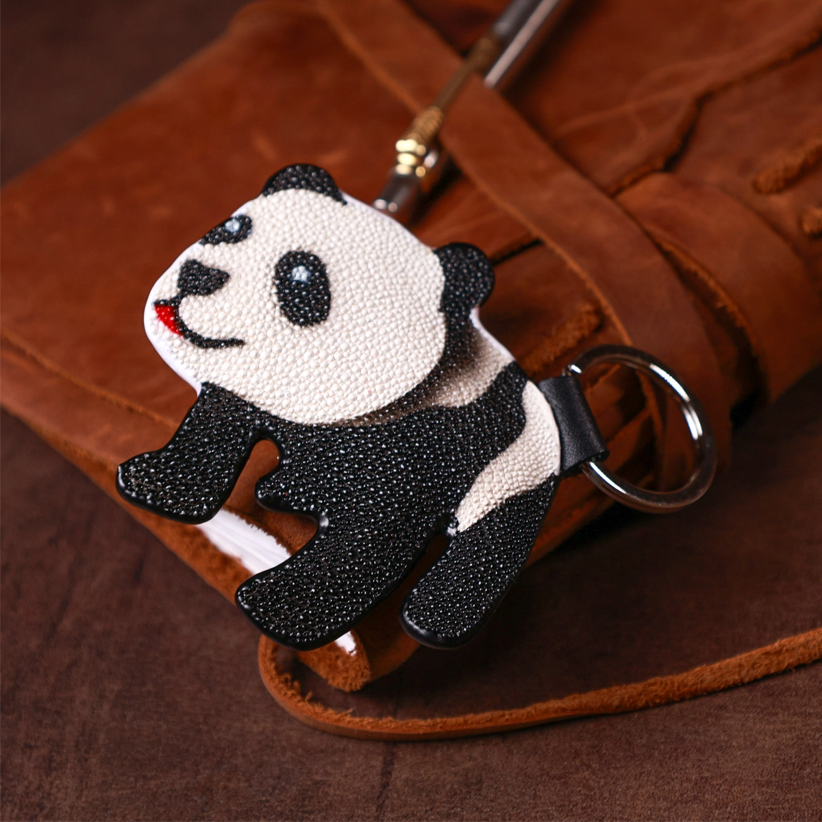 Брелок из натуральной кожи морского ската, очень стойкой к износу, проколам, порезам, к разрывам и даже к огню. Изделие подходит как и для ключей, так и как аксессуар для сумочки или рюкзака.