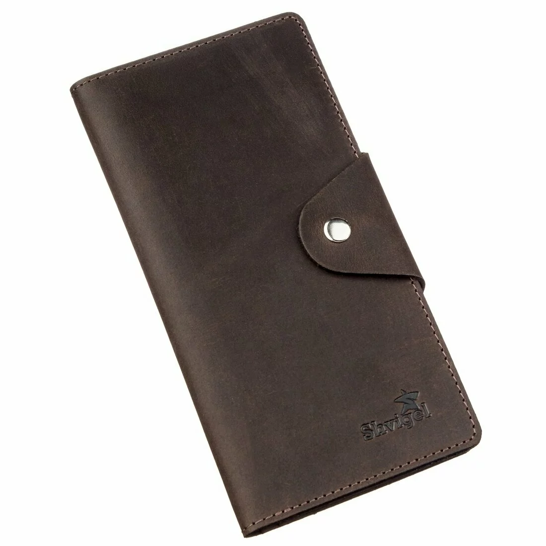 Вертикальный мужской кожаный бумажник с классическим дизайном.