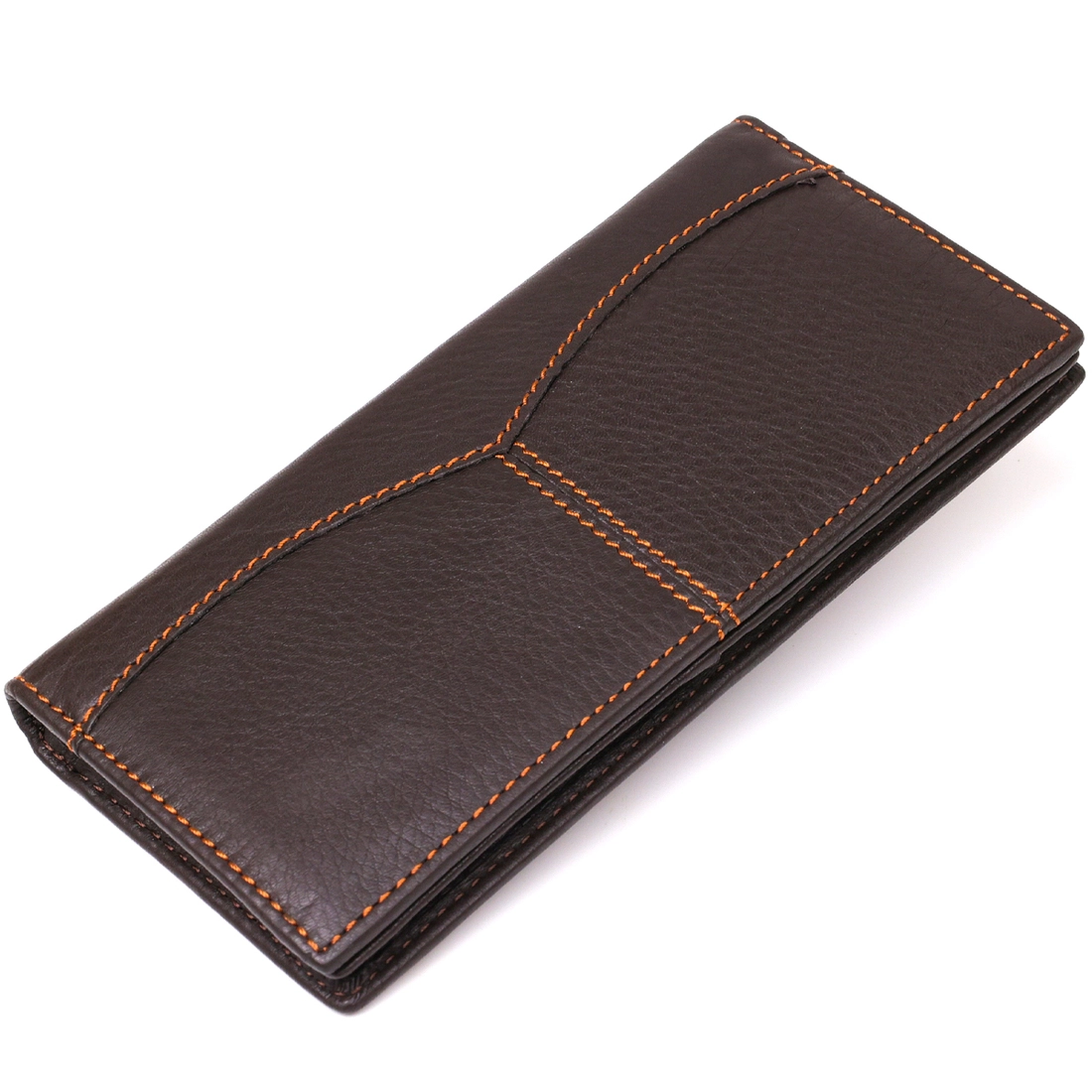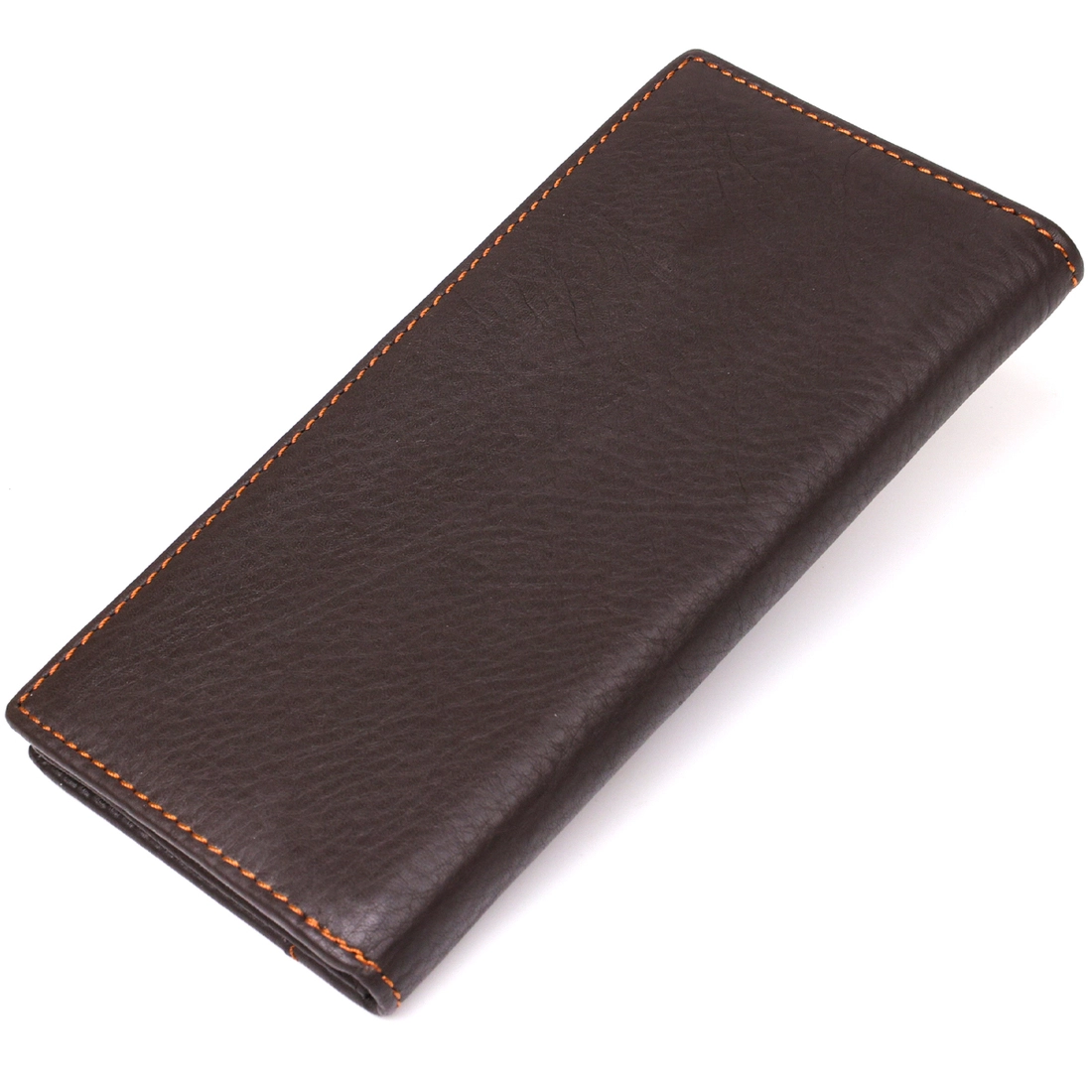 Современный тонкий мужской купюрник из натуральной высококачественной кожи мягкой и приятной на ощупь. По краям бумажник прошит светлой и крепкой нитью. Аксессуар упакован в текстильный пылезащитный чехол. Модель очень тонкая и практичная и будет носиться сравнительно долго. Данный бумажник станет прекрасным подарком для любого мужчины.