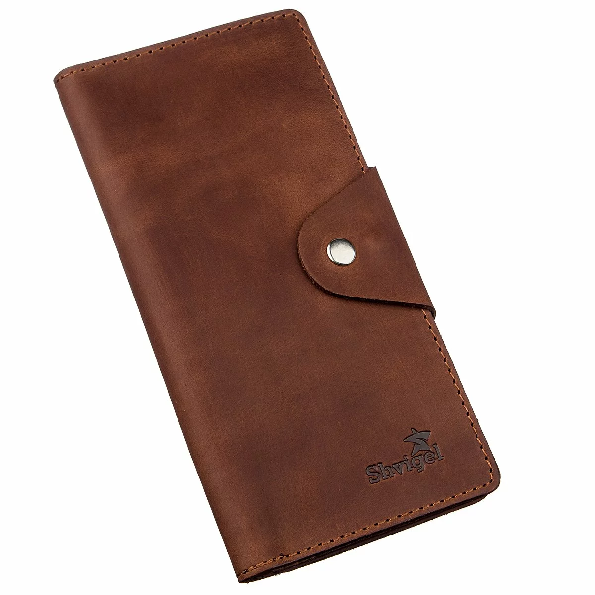 Бумажник мужской вертикальный из винтажной кожи на кнопках SHVIGEL 16181 Коричневый