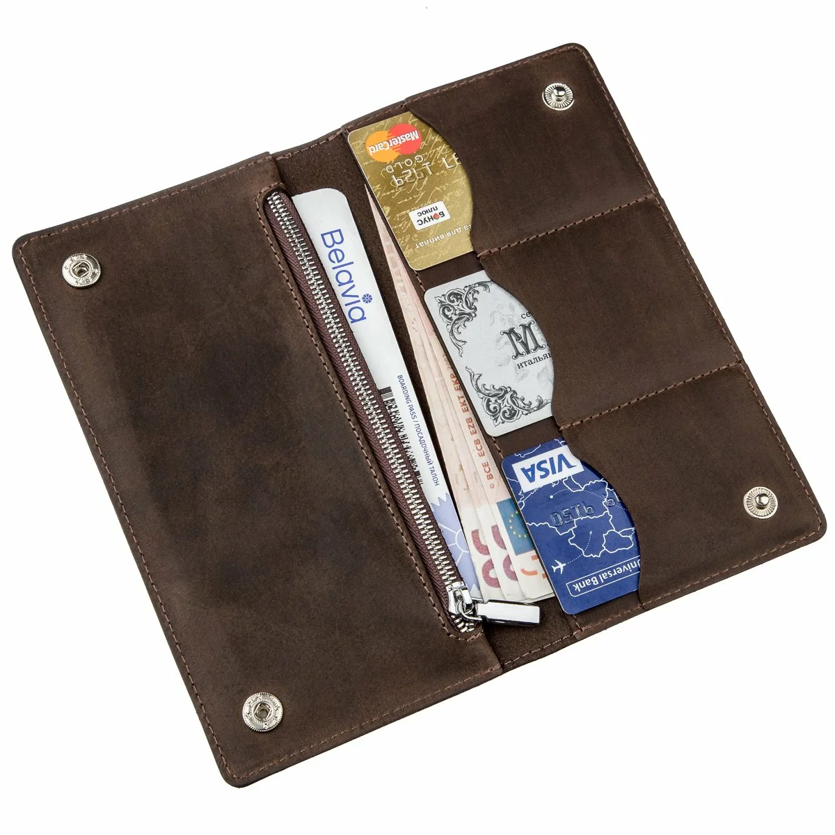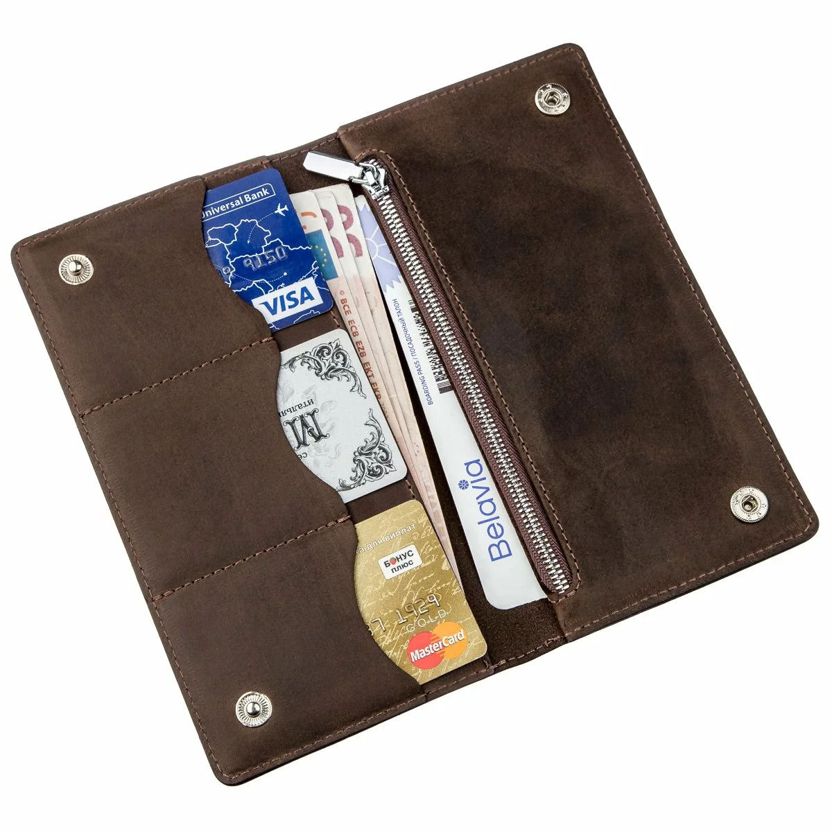 помещаются в развернутом виде. Закрывается кошелек на две кнопки