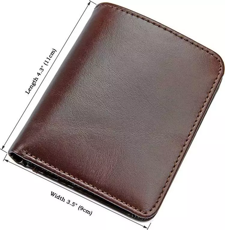 Вертикальный мужской бумажник коричневого цвета. Аксессуар выполнен из натуральной высококачественной гладкой кожи приятной на ощупь. Кошелек аккуратно прошит светло-коричневой нитью, что придает ему изюминку.