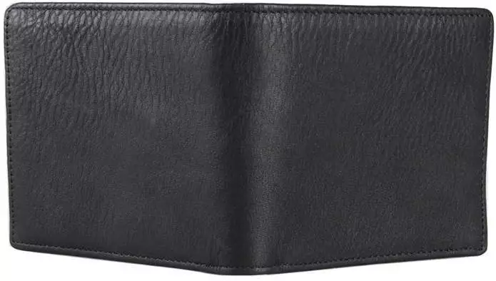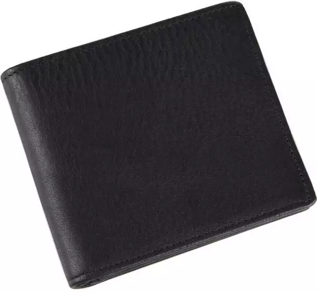 Горизонтальный мужской бумажник черного цвета. Аксессуар выполнен из натуральной высококачественной фактурной кожи приятной на ощупь. Аксессуар упакован в белый пылезащитный мешок.