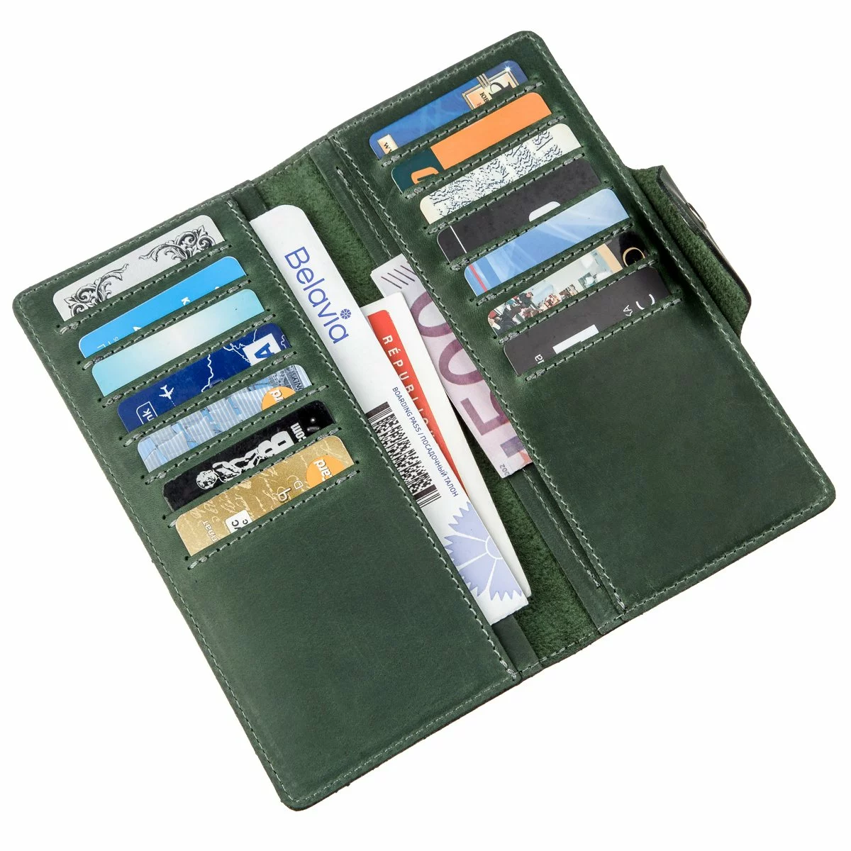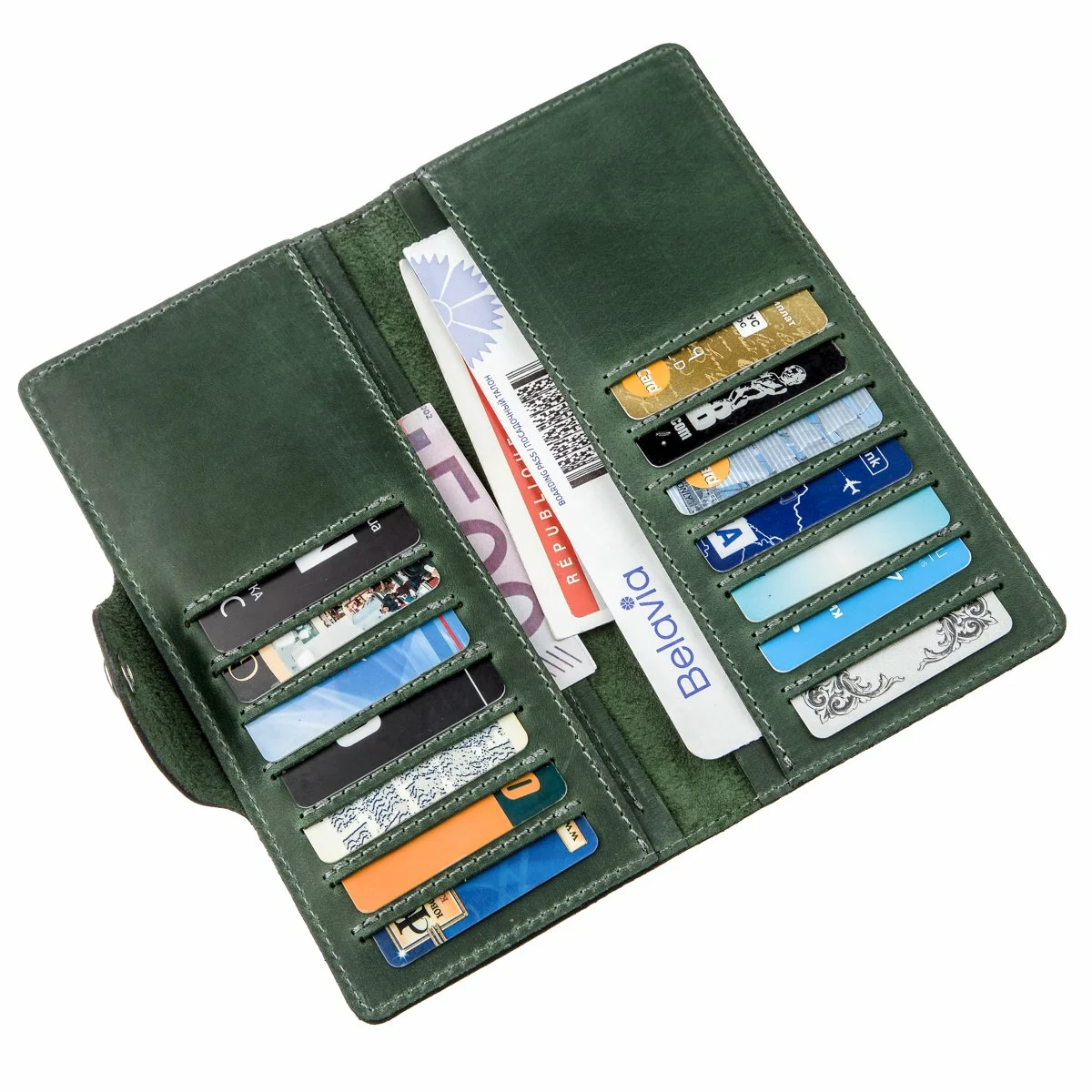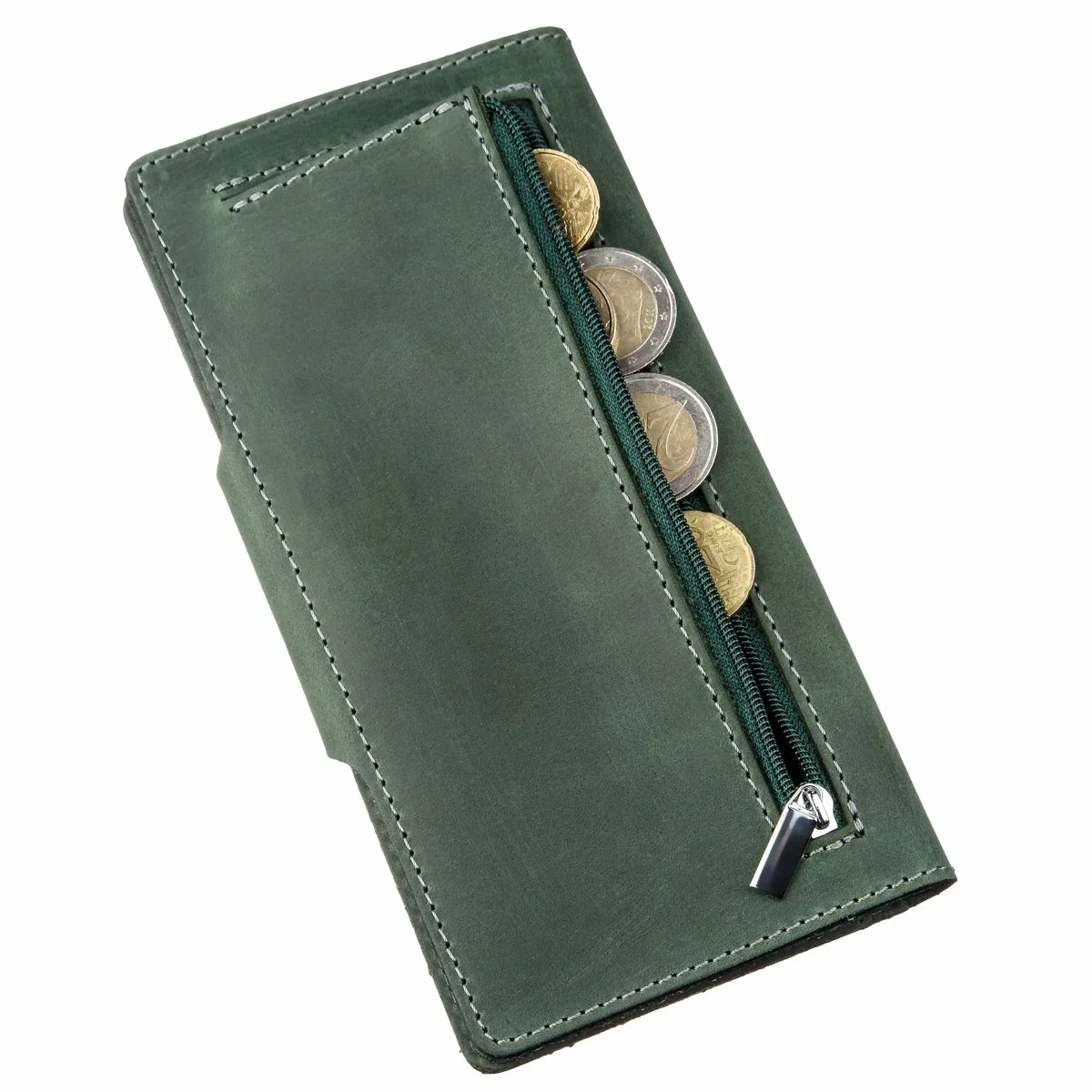 Солидный бумажник из винтажной кожи. Аксессуар выполнен в