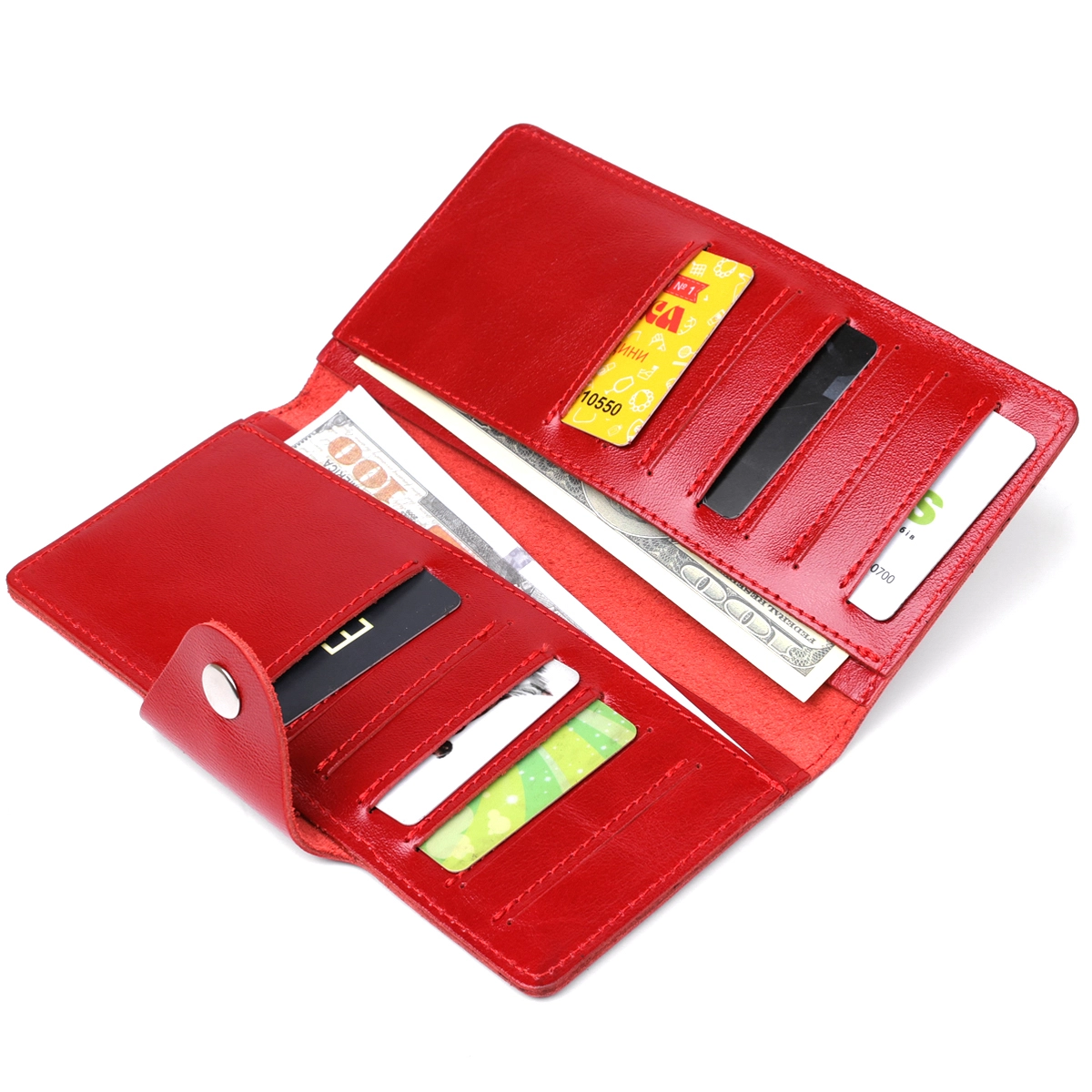 Женский яркий тонкий бумажник из натуральной кожи высочайшего