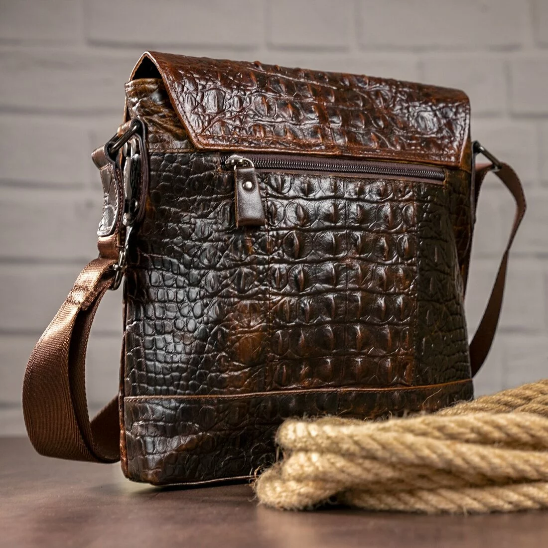 Модель прошита светлой нитью. Оригинальная сумка с тиснением под крокодила вертикального типа. Модель выглядит стильно и дорого. Переливается на солнце. Сумка премиум качества с фантастическим дизайном и приемлемой ценой. Комфортная в эксплуатации и не прихотлива в использовании. Подойдет на подарок для близкого человека. Аксессуар упакован в пылезащитный чехол.