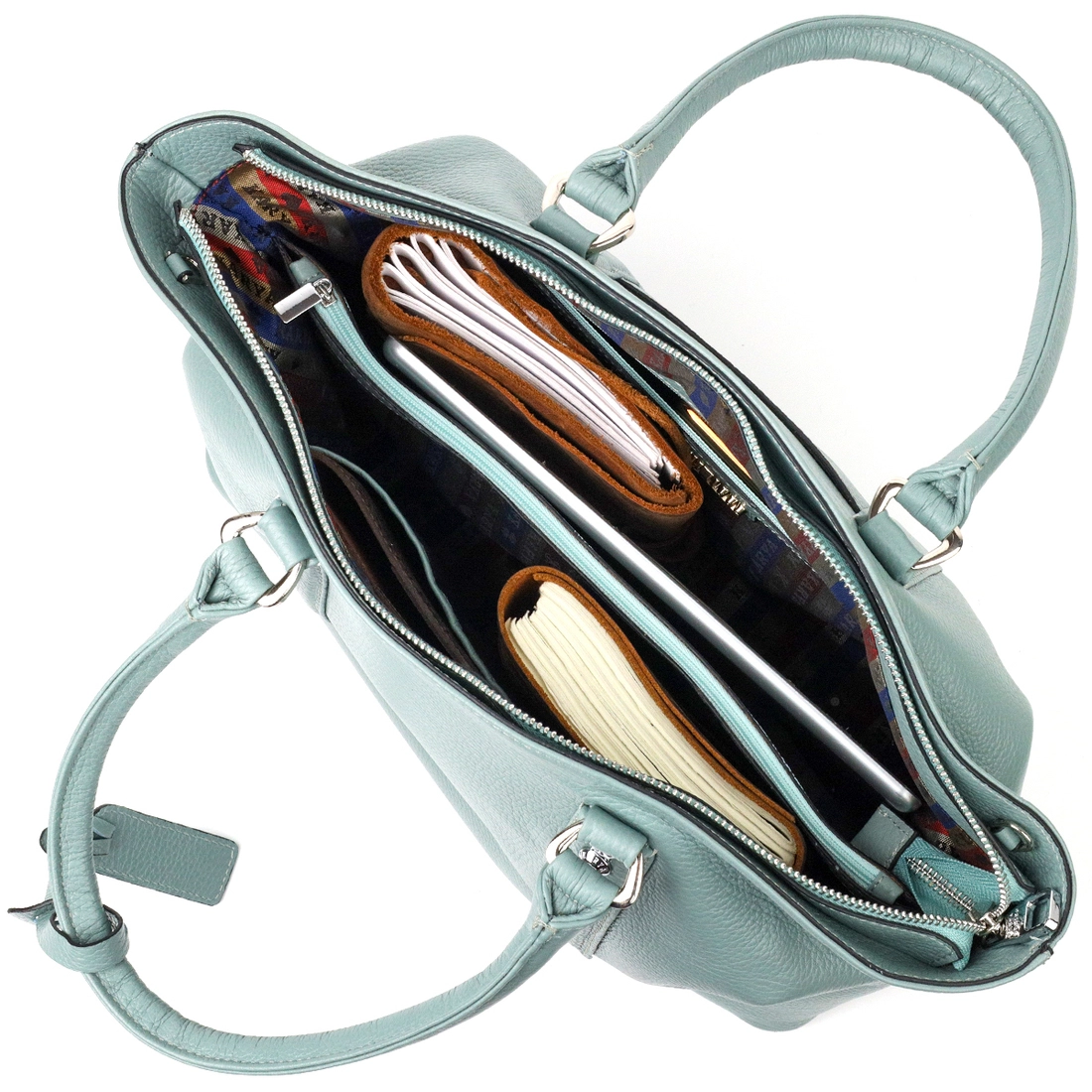 стильном дизайне и необычном бирюзовом цвете. Фурнитура серебряного