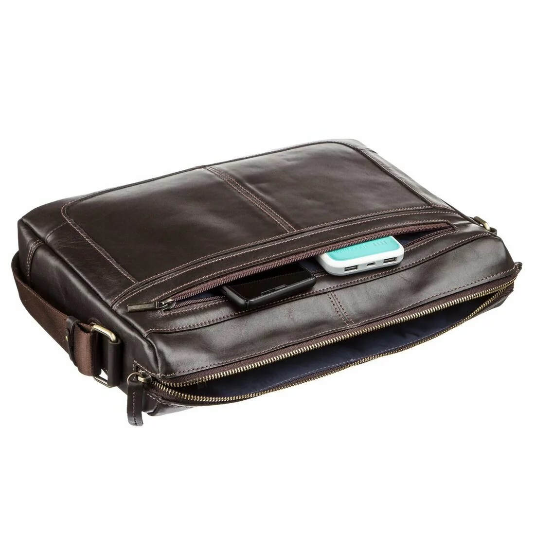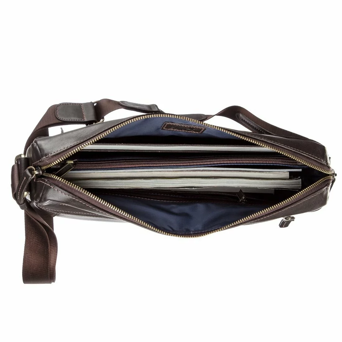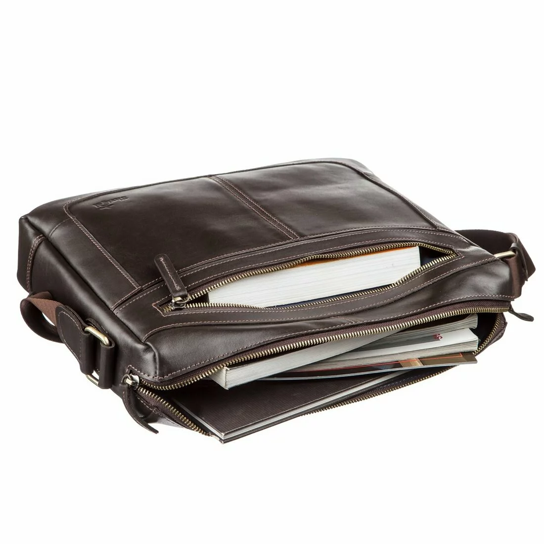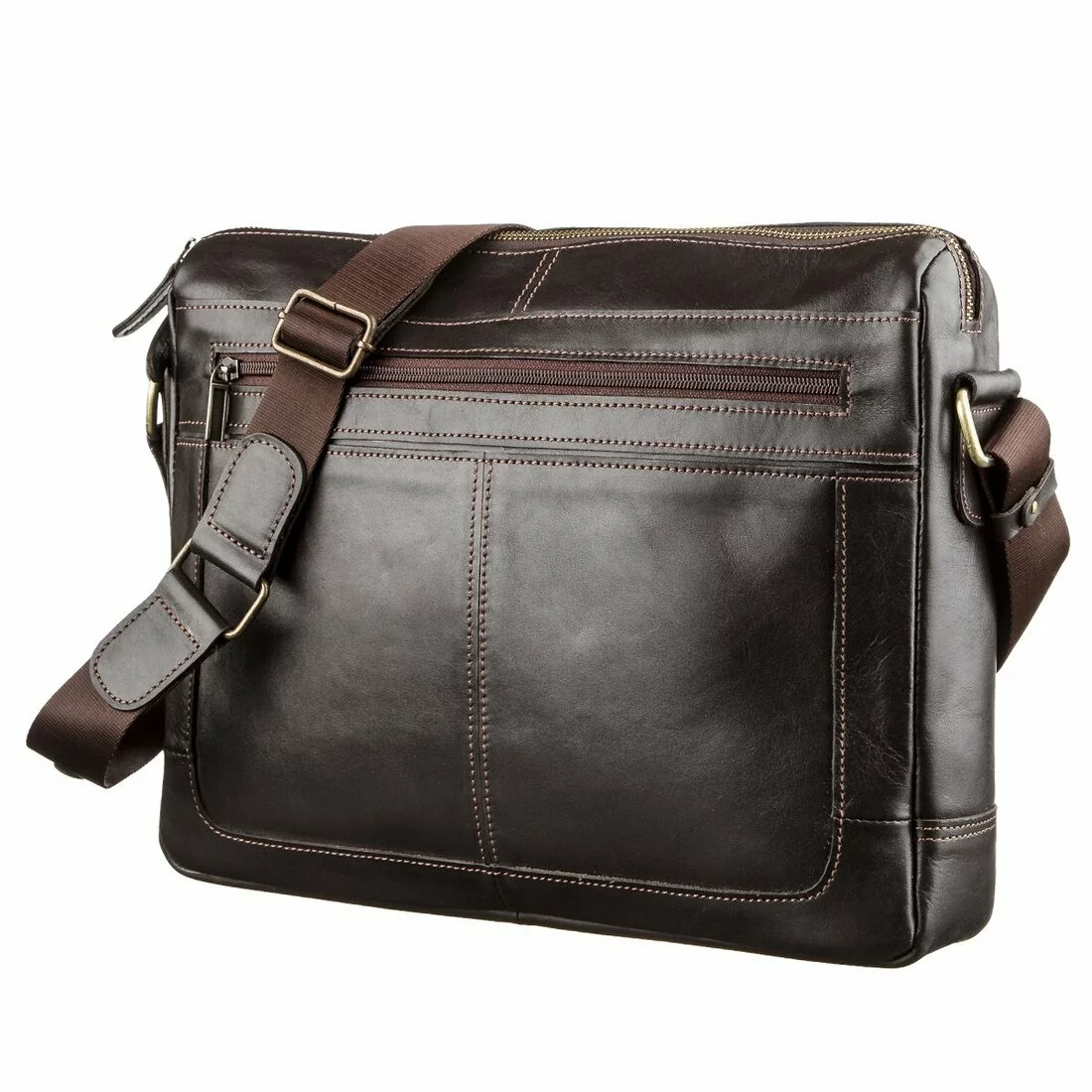 Коричневая мужская сумка из гладкой кожи. Данный тип кожи всегда