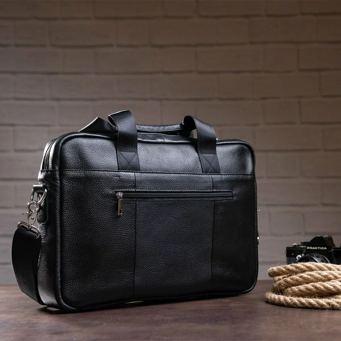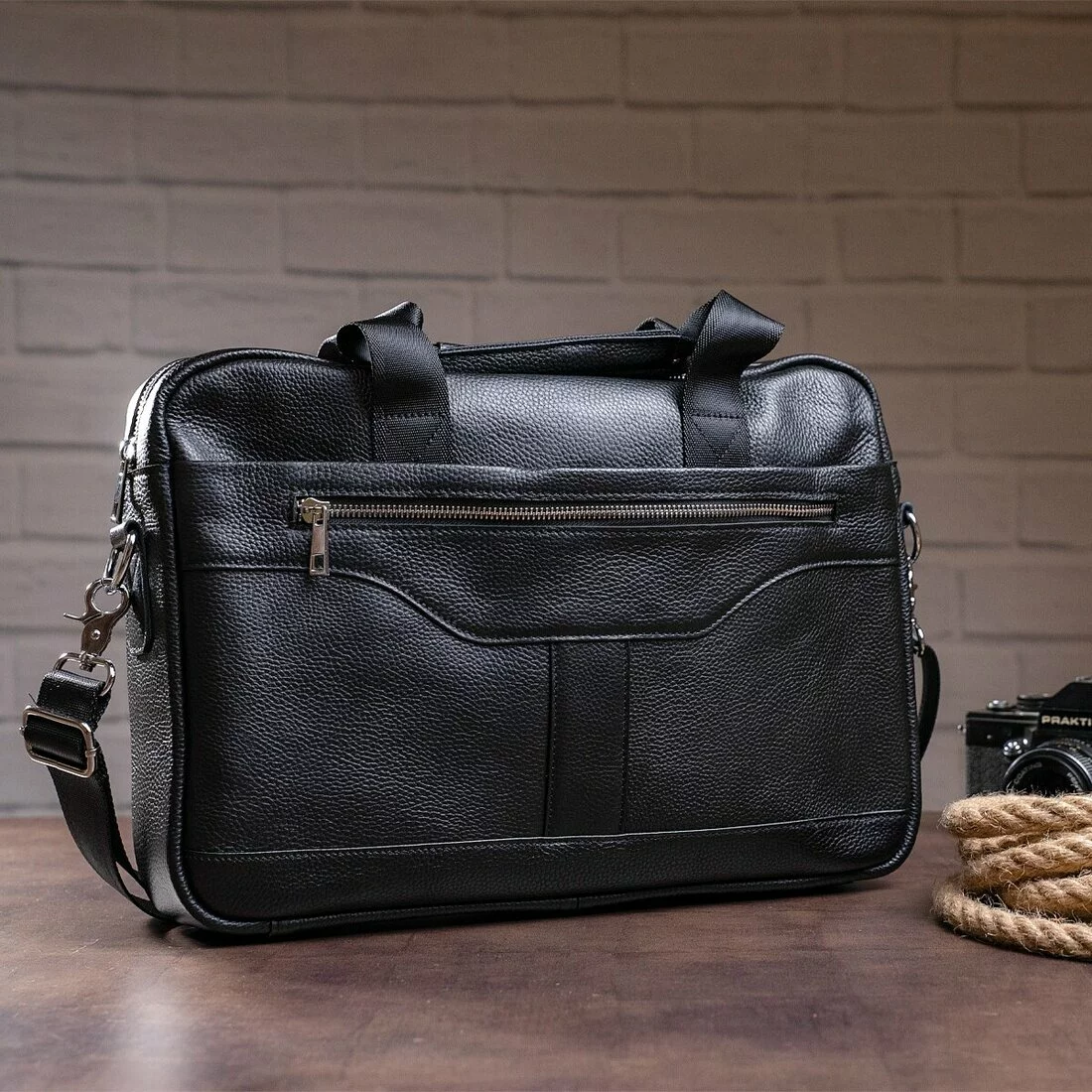 Деловая мужская сумка из натуральной кожи в классическом цвете.