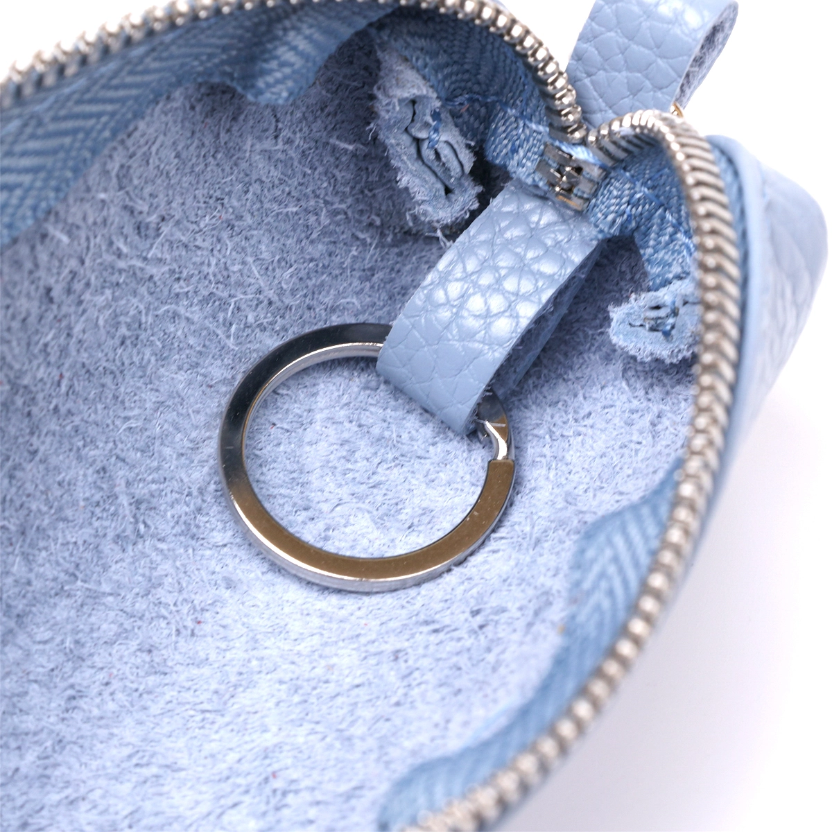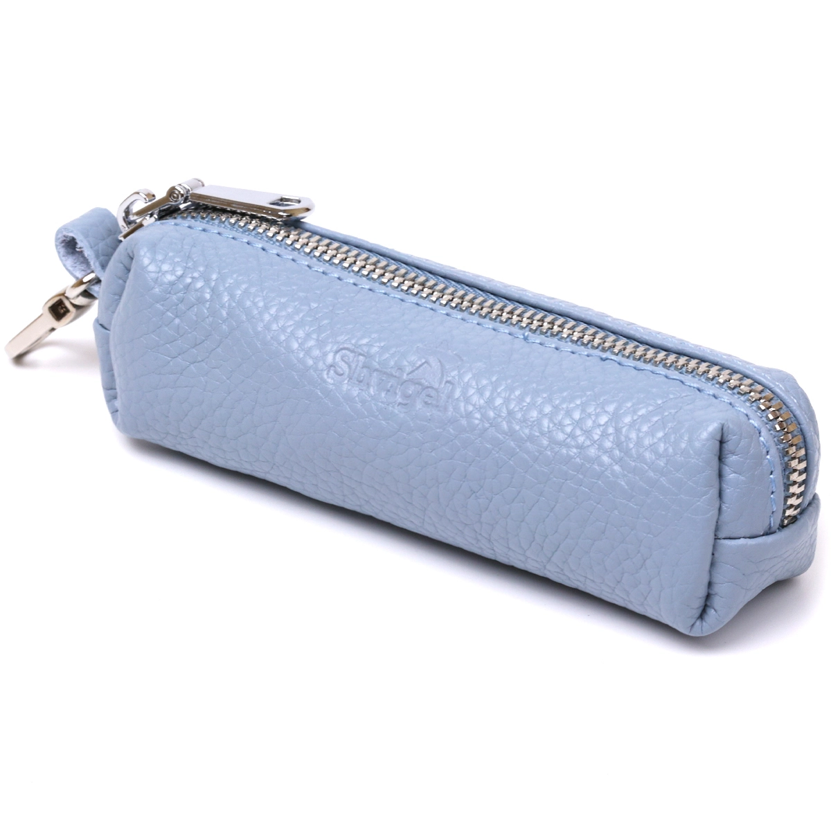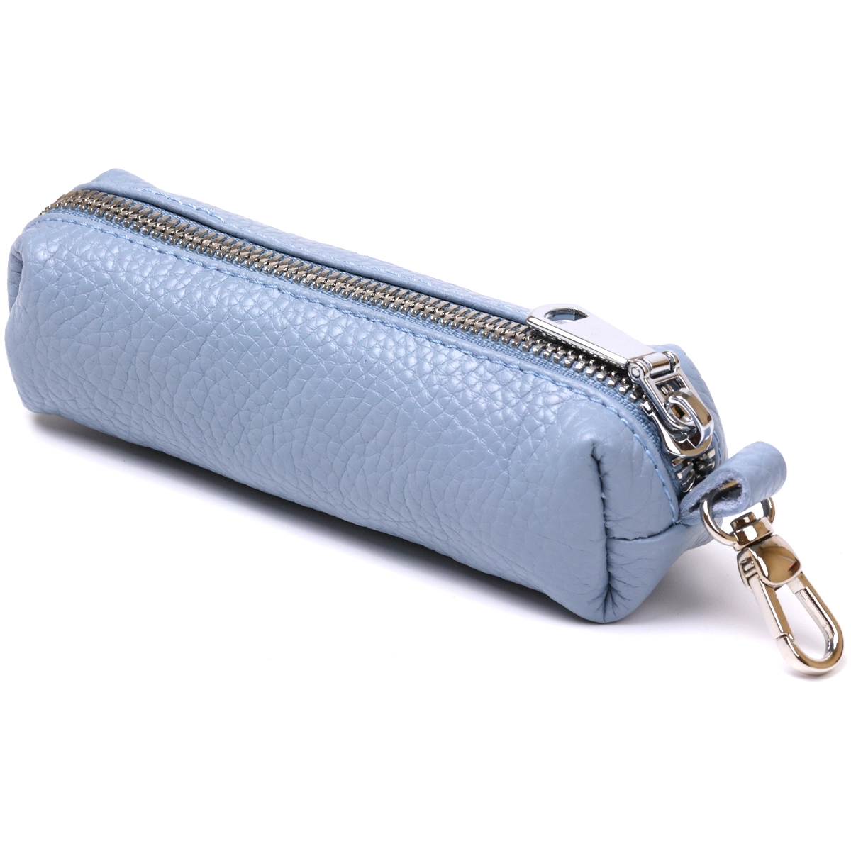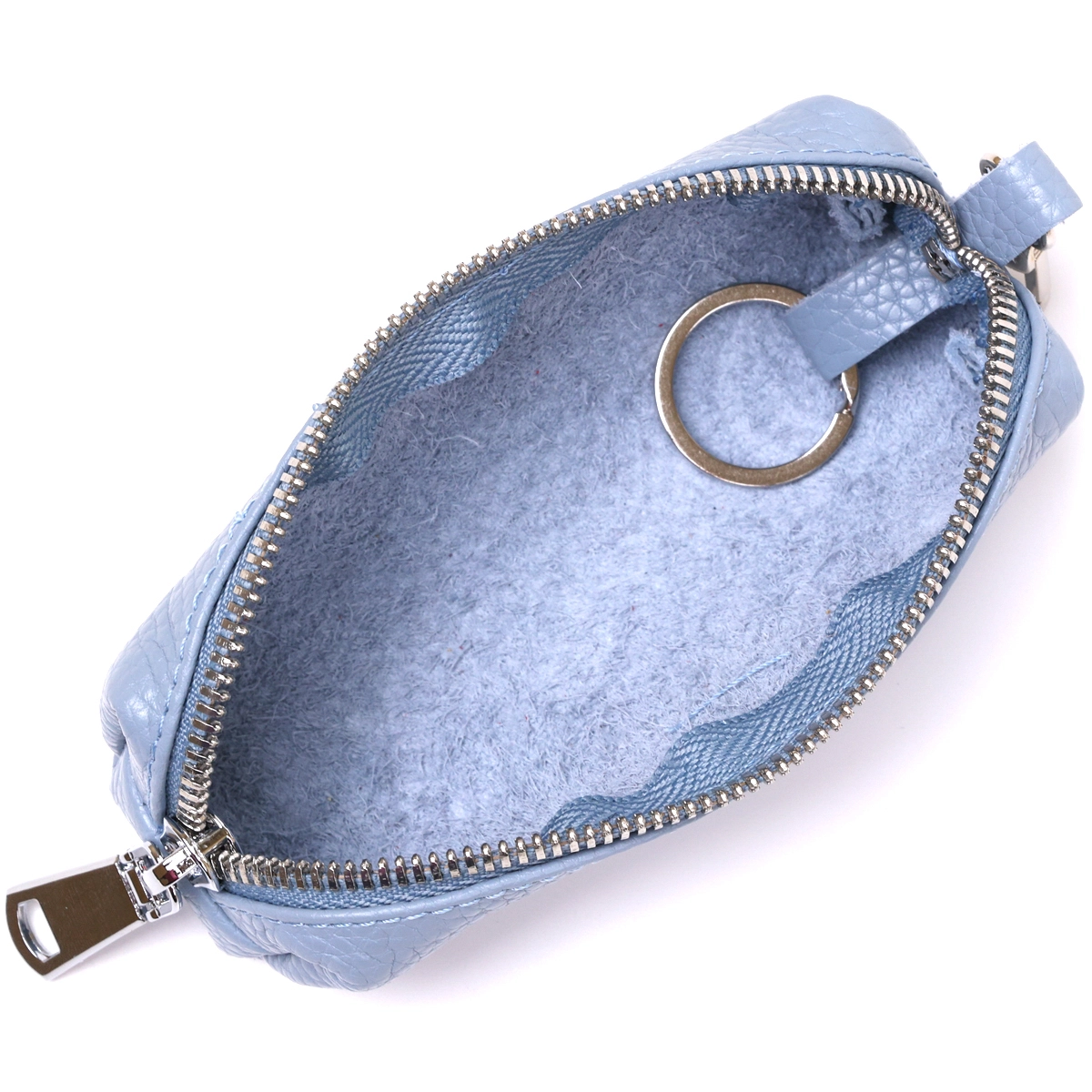 Добротная ключница для тех, кто хочет хранить свои ключи в надежном месте. Выполнена из натуральной высококлассной кожи с отменными эксплуатационными характеристиками. Внутри расположено металлическое кольцо для ключей, на внешнем боку есть карабин. Цвет изделия – голубой, что смотрится очень стильно и красиво.