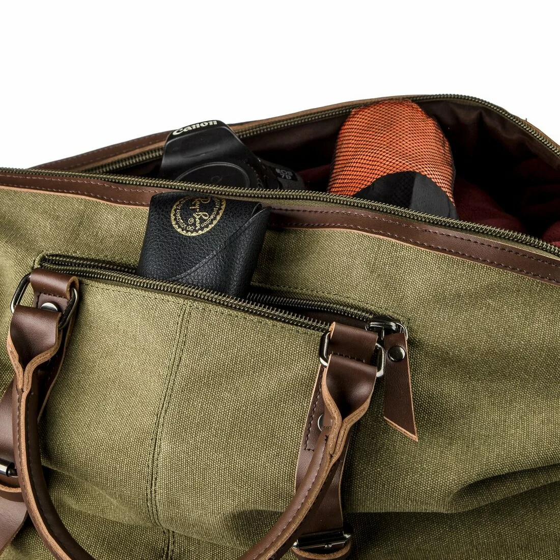 Очень вместительная дорожная сумка из плотного текстиля с боковыми