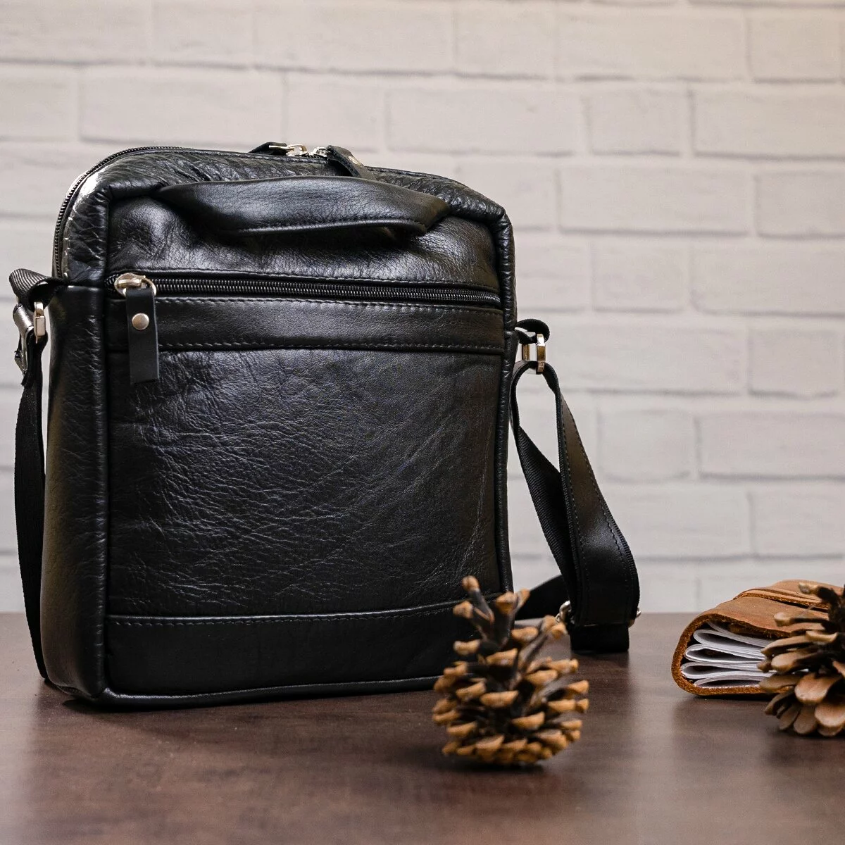 Великолепная мужская сумка вертикального формата, изготовленная из натуральной кожи черного цвета. Она отлично дополнит как деловой, так и повседневный стиль и станет Вашим любимым аксессуаром, благодаря своей практичности.