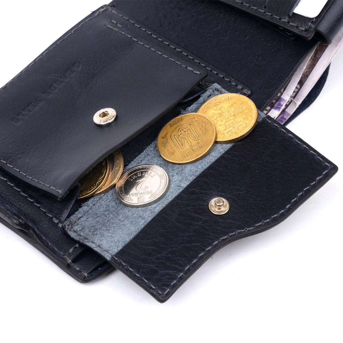 синий цвет смотрится очень ярко. Портмоне поместится в маленькую