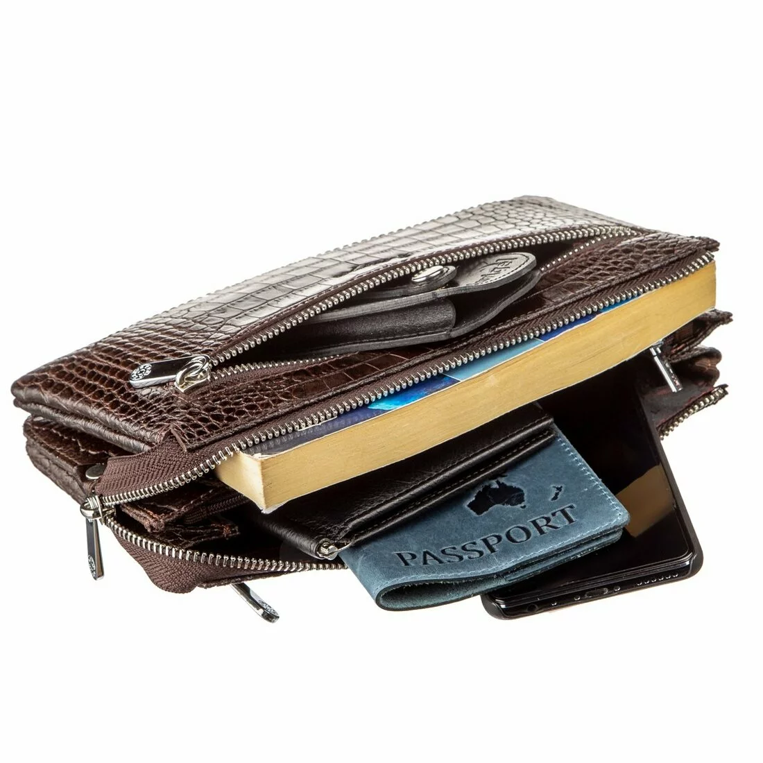 Стильный и добротный клатч-барсетка из грубой, натуральной кожи