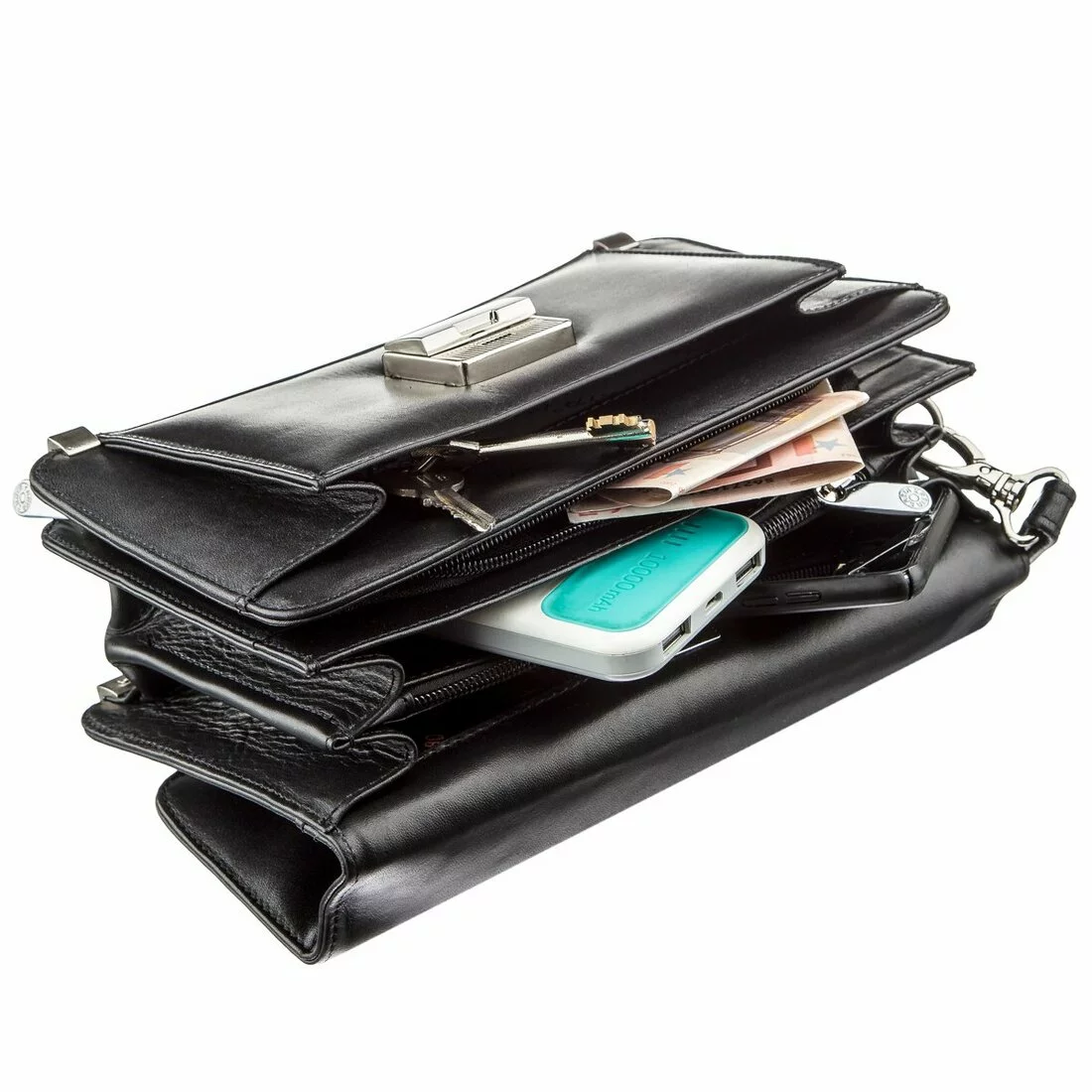 - барсетка закрывается на клапан с механическим замком;