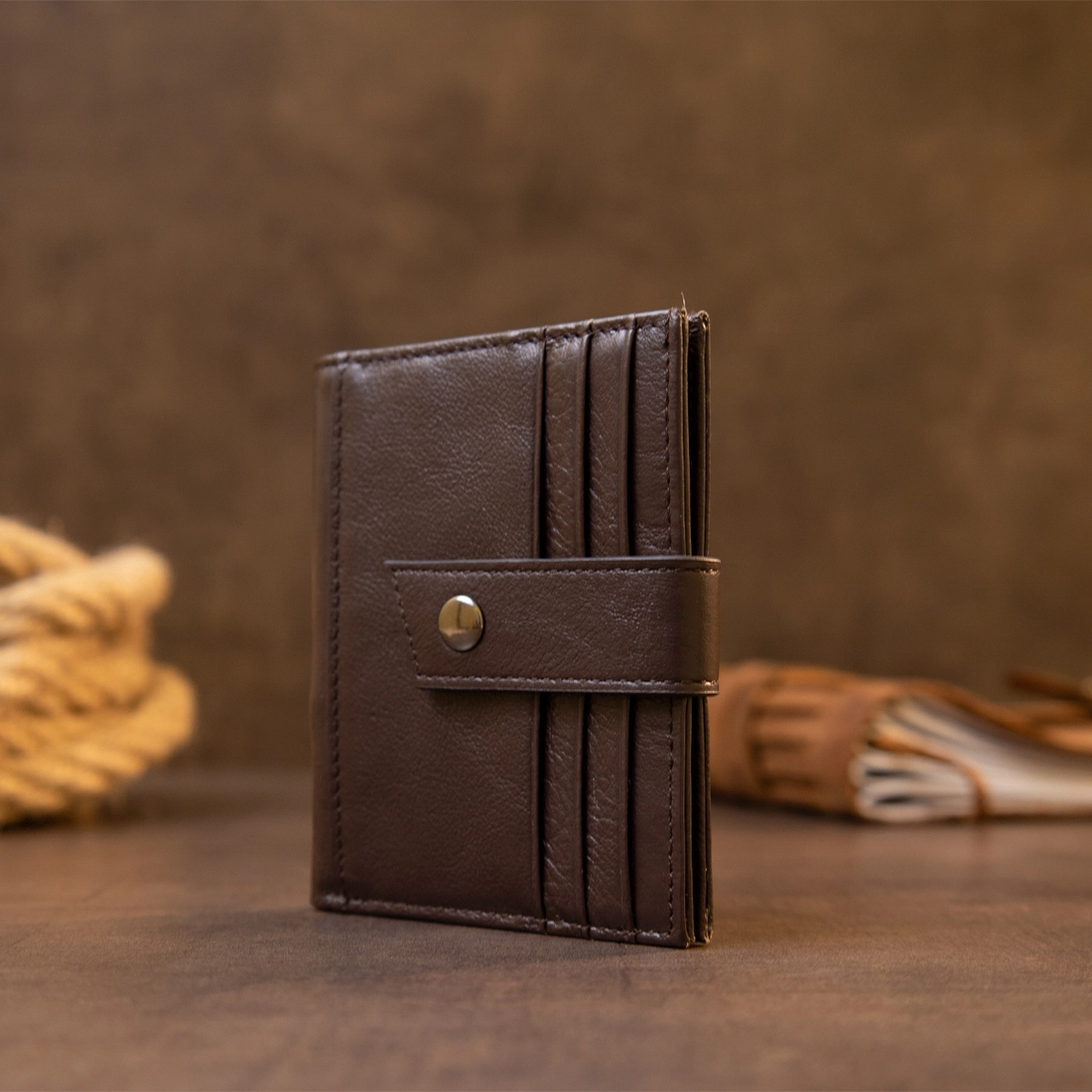 с кнопкой. Модель имеет 12 ячеек под кредитки. Аксессуар с