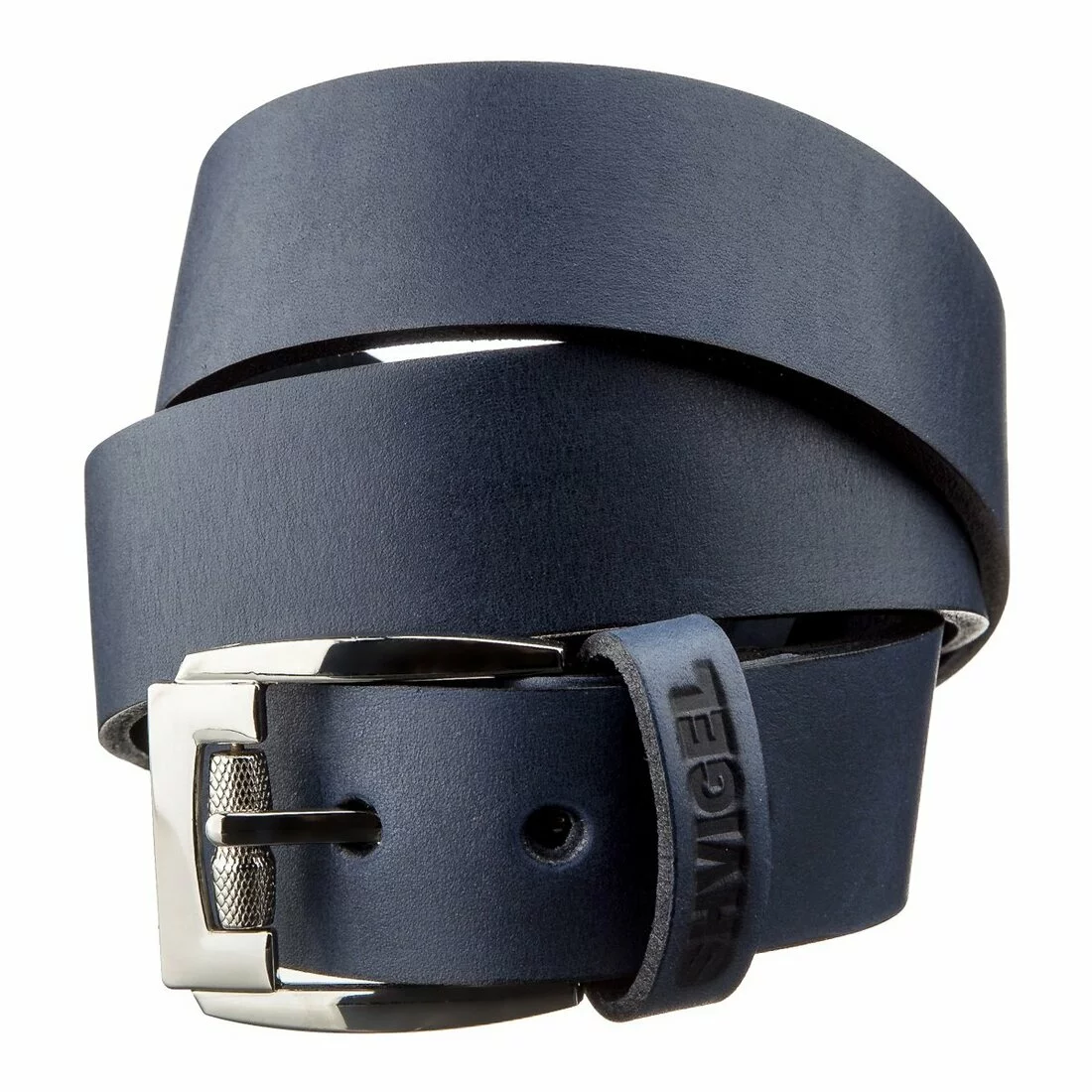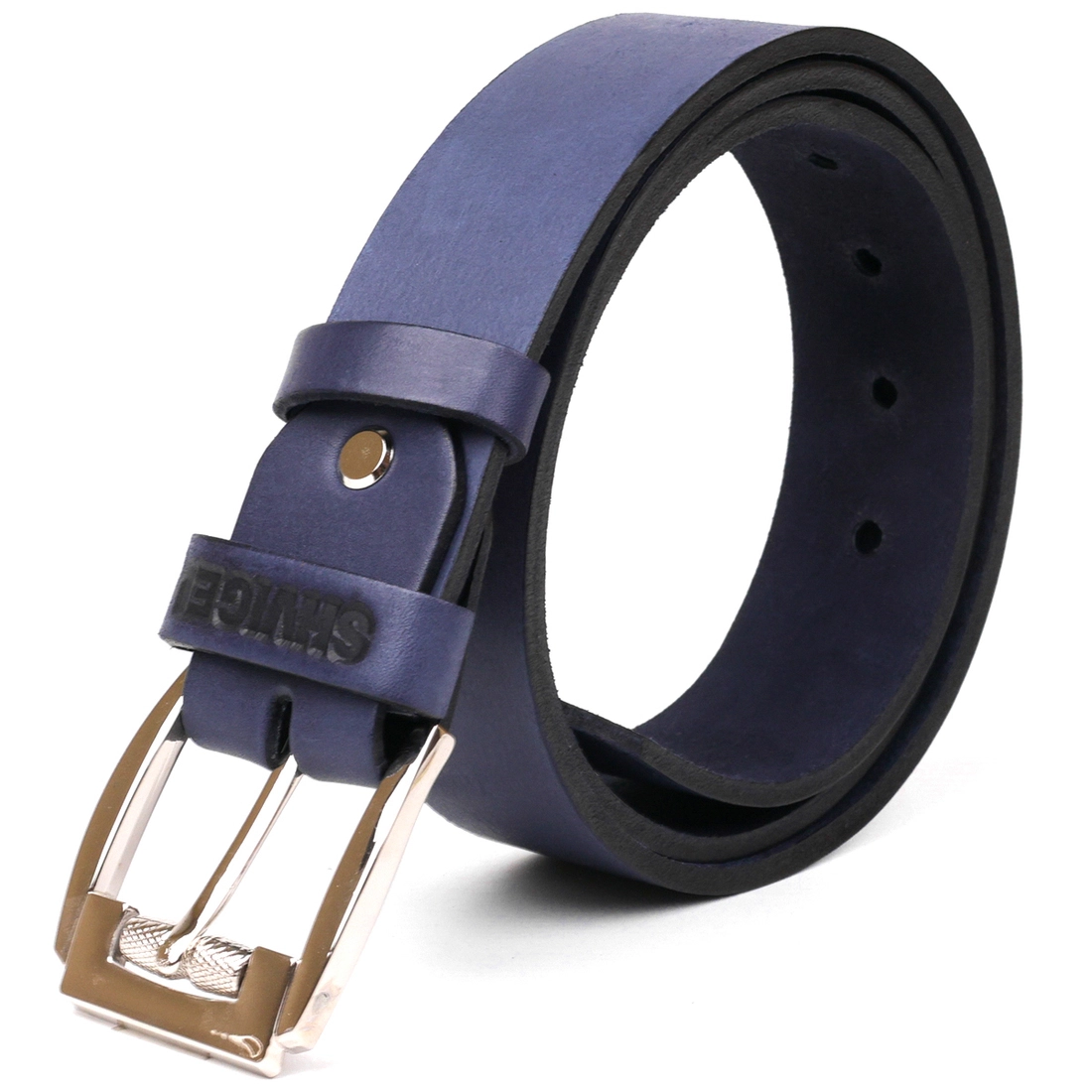 Солиднейший мужской ремень, синего цвета, изготовлен из натуральной кожи высокого качества. Ремень выполнен из натуральной кожи высочайшего качество превосходно подойдет к брюкам. Массивная пряжка изготовлена из качественного металла. Ремень будет лучшим подарком для любого мужчины.