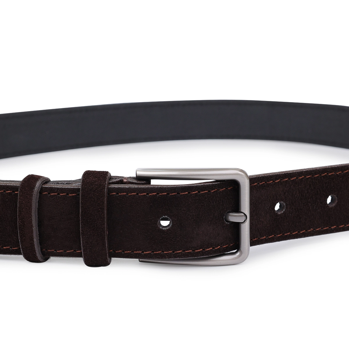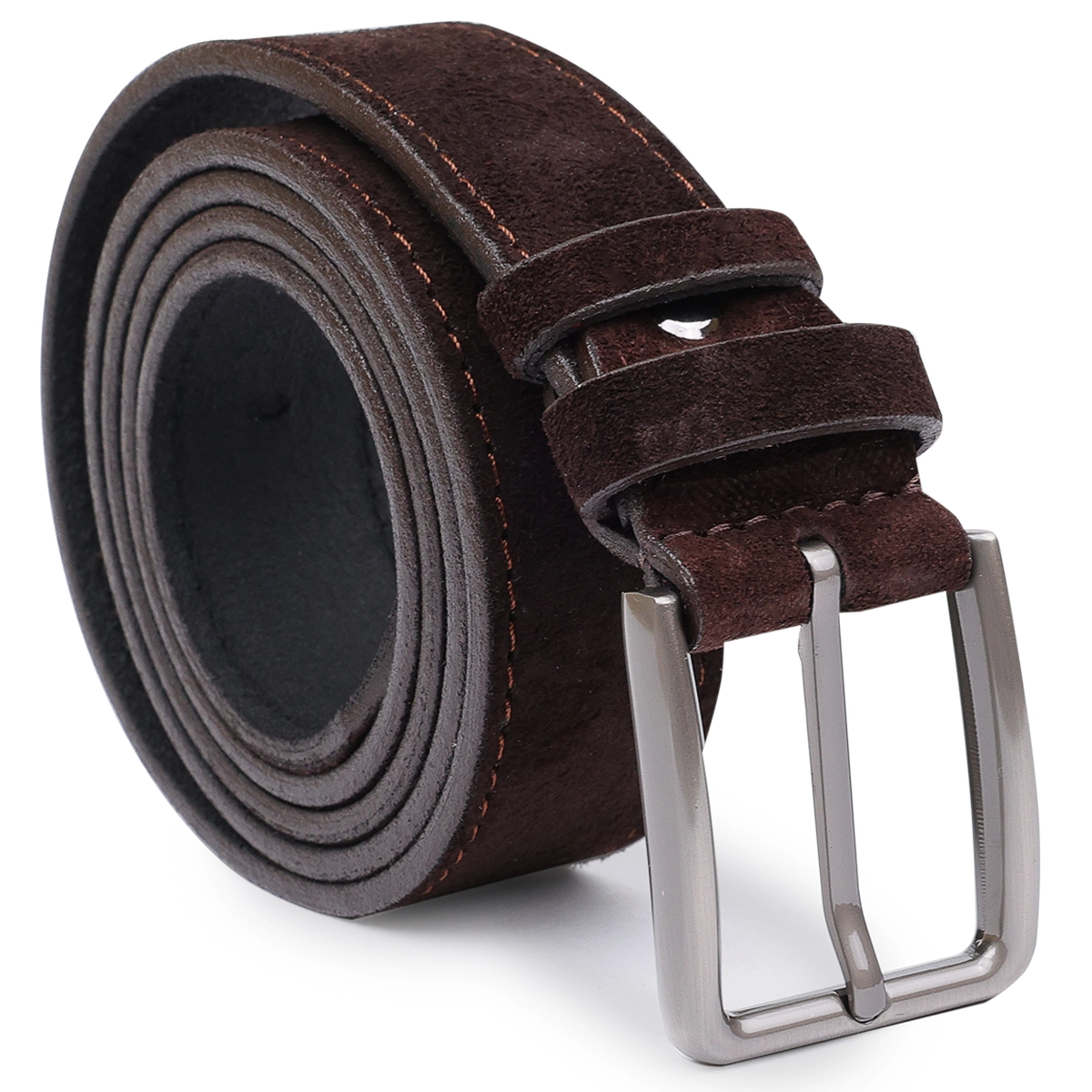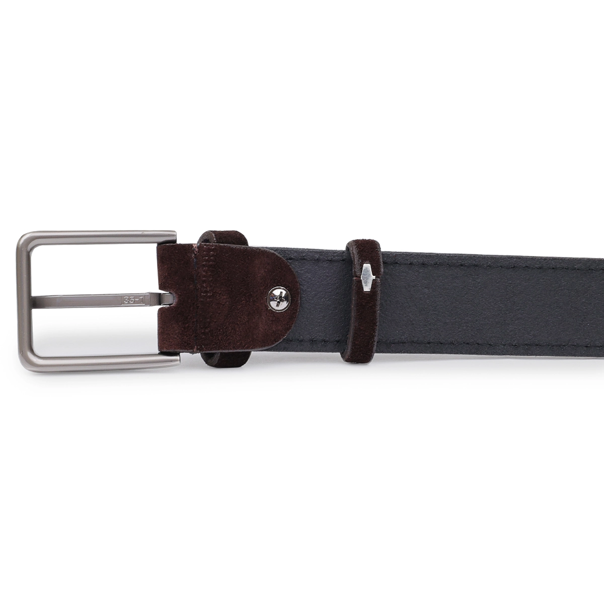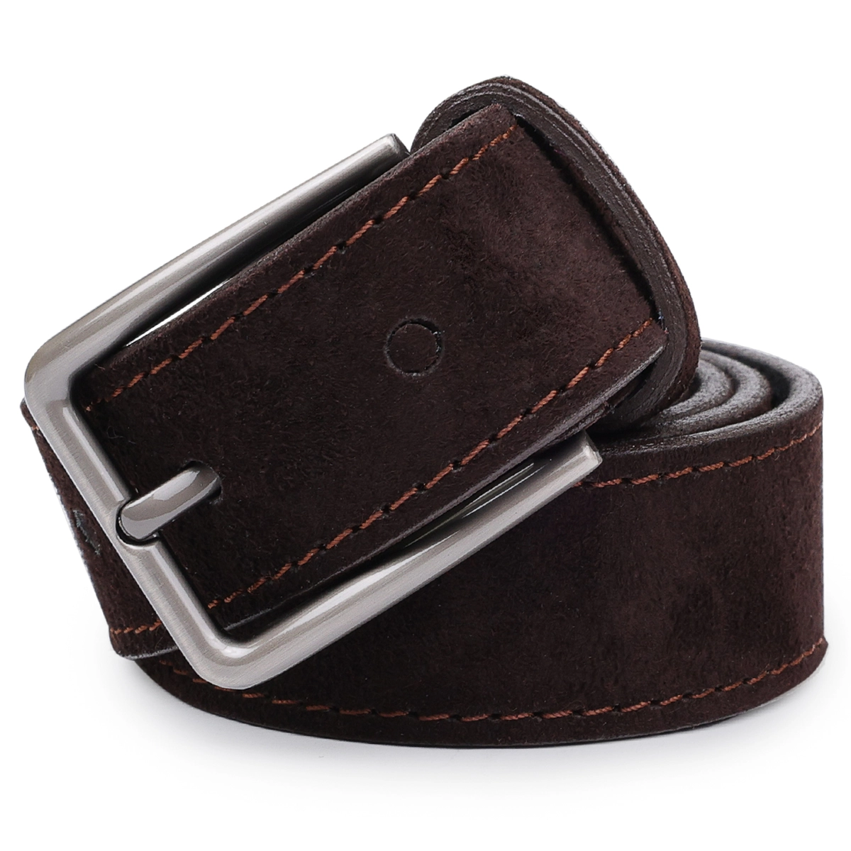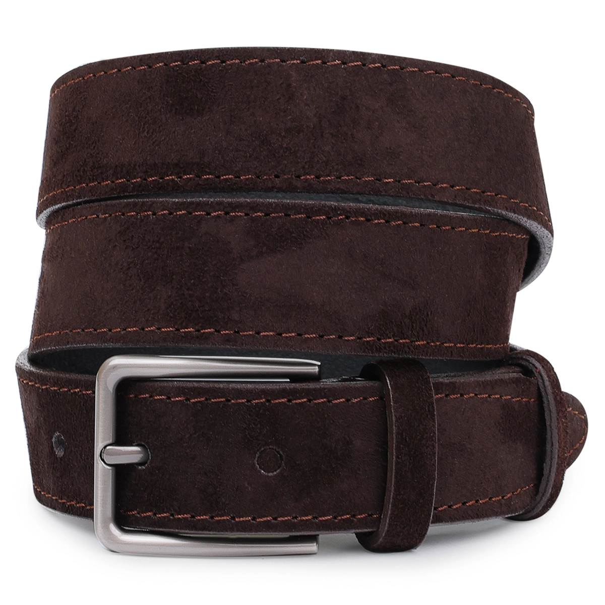 Мужской ремень средней длины из замши, что очень модно в этом сезоне. Имеет красивый насыщенный шоколадный цвет, приятную фактуру и классическую пряжку с надежным и простым механизмом. Такой ремень, непременно, станет чудесным подарком любимому мужчине на любой праздник.