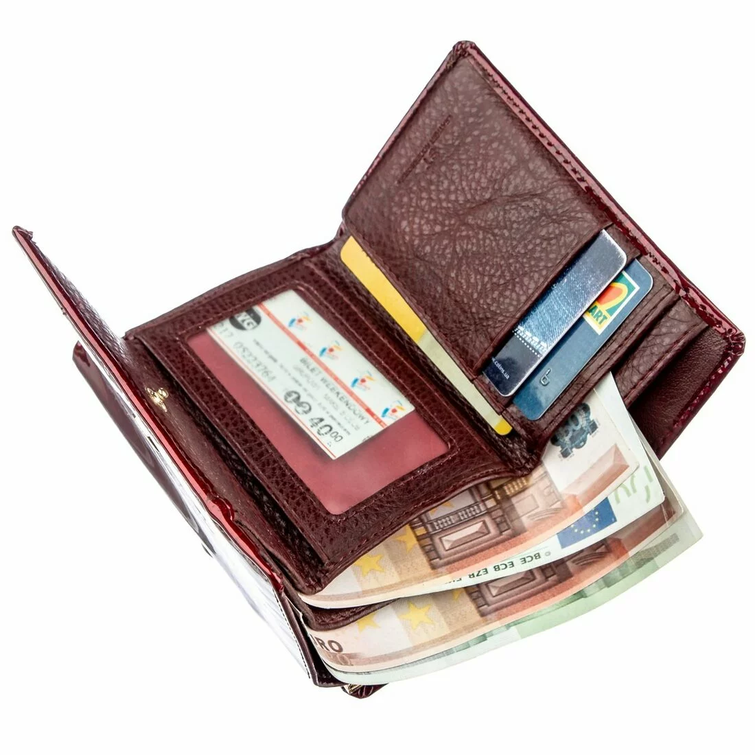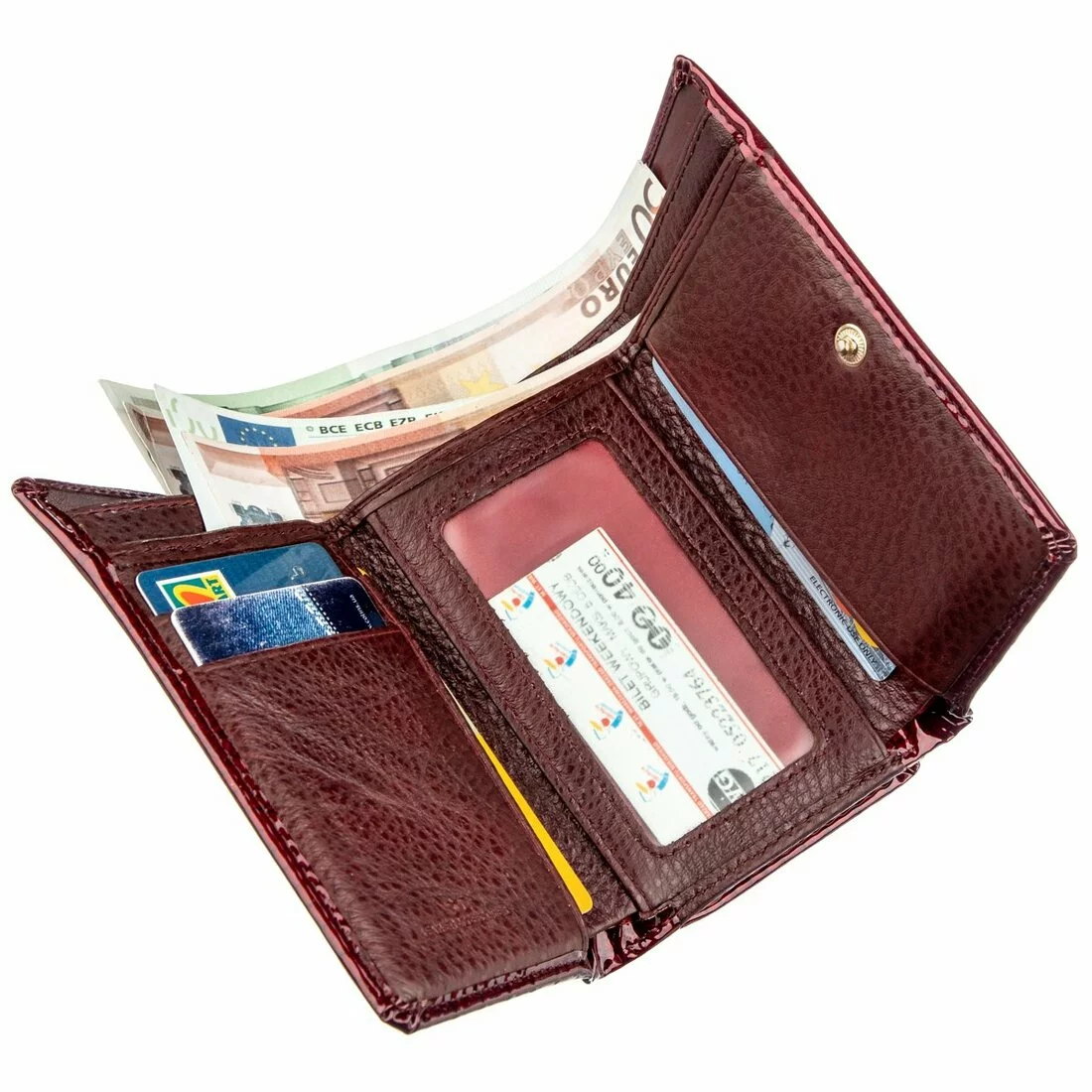 - женский кошелек из натуральной кожи на кнопке;