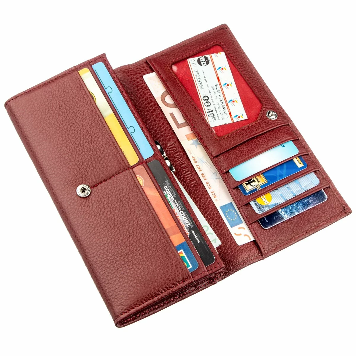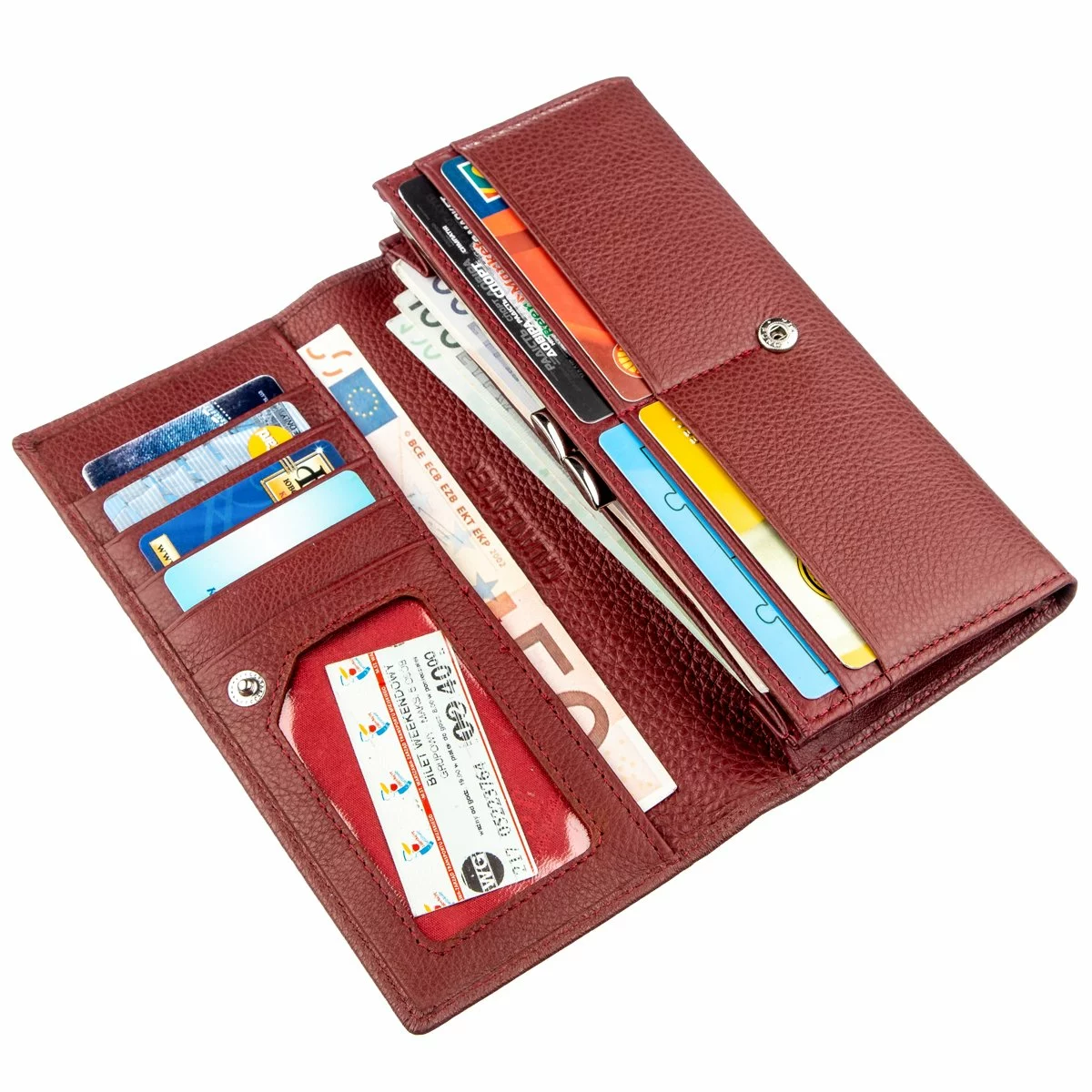 Шикарный классический кошелек для неподражаемых женщин из высококачественной натуральной кожи с зернистой и мягкой фактурой. Имеет строгий, но одновременно современный дизайн. Сделано изделие в живописном темно-бордовом цвете с матовым оттенком, смотрится стильно и богато. В кошельке есть три больших и вместительных основных отделения, отделение на молнии для особо ценных вещей и монетница на удобной и практичной защелке. На внешней стороне также присутствует большое отделение на всю длину кошелька для ценностей, к которым должен быть быстрый доступ. Упакован аксессуар в твердую картонную коробку белого цвета.