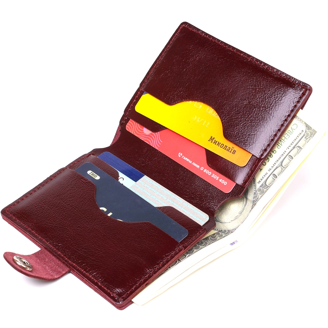 Классическое портмоне в строгом дизайне от украинского производителя. Выполнено из натуральной высококлассной кожи с отменными показателями износостойкости и прочности. Внутри есть вместительное отделение для купюр на всю длину и несколько карманов для пластиковых карточек. Закрывается аксессуар с помощью кожаного хлястика на кнопку.