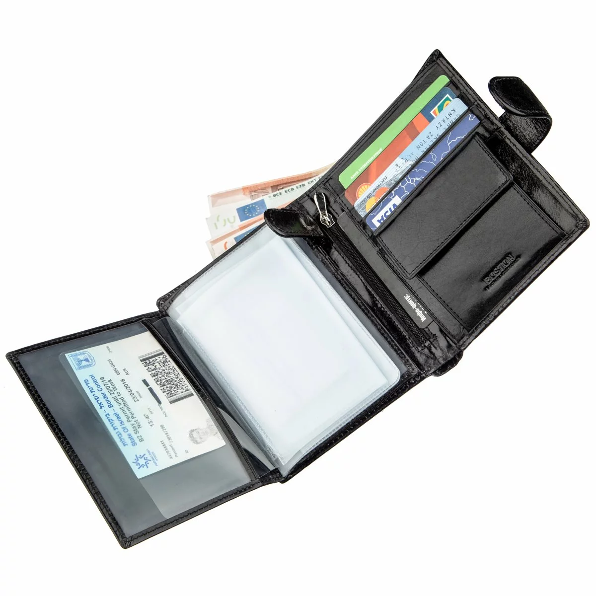 - три прозрачных отделения для карт;