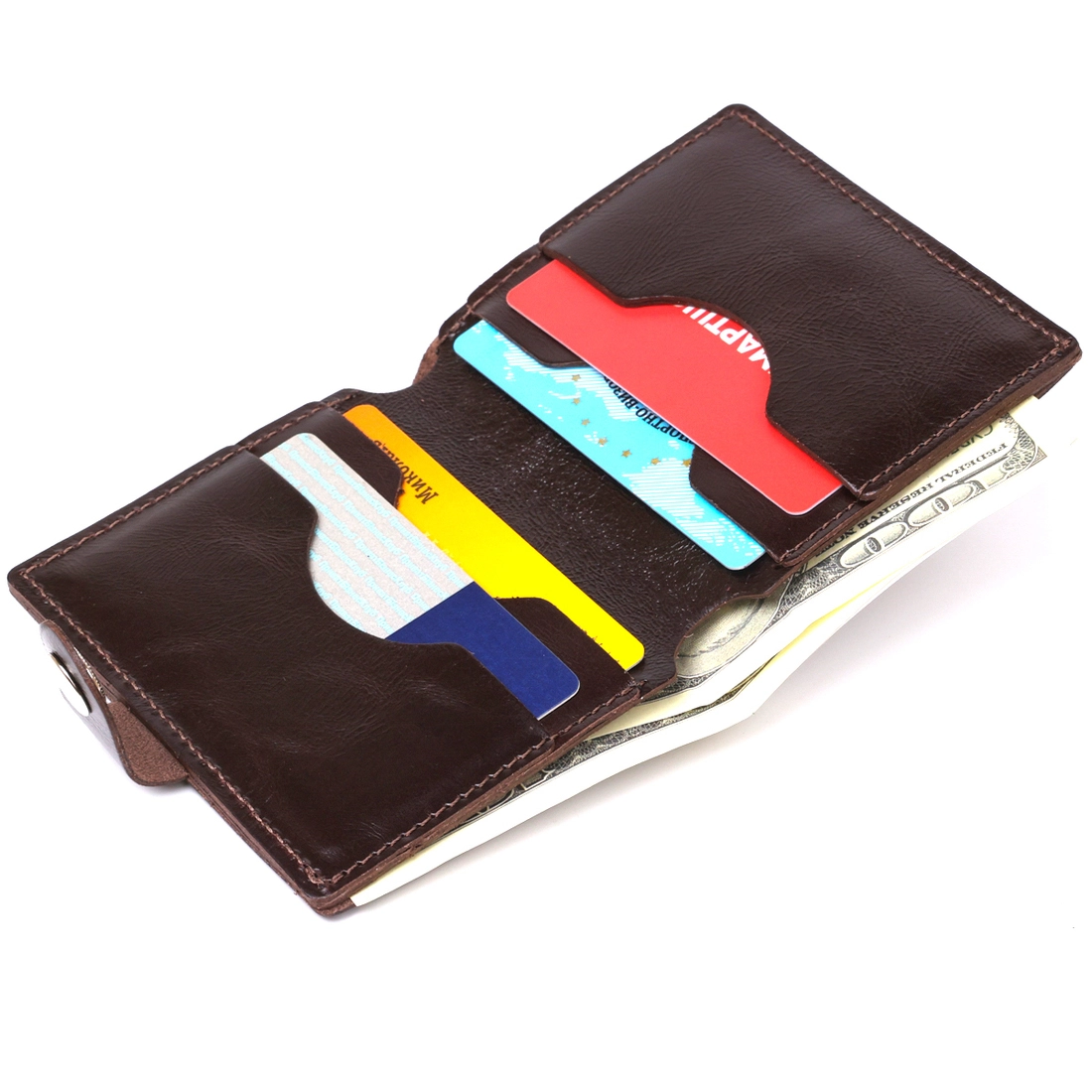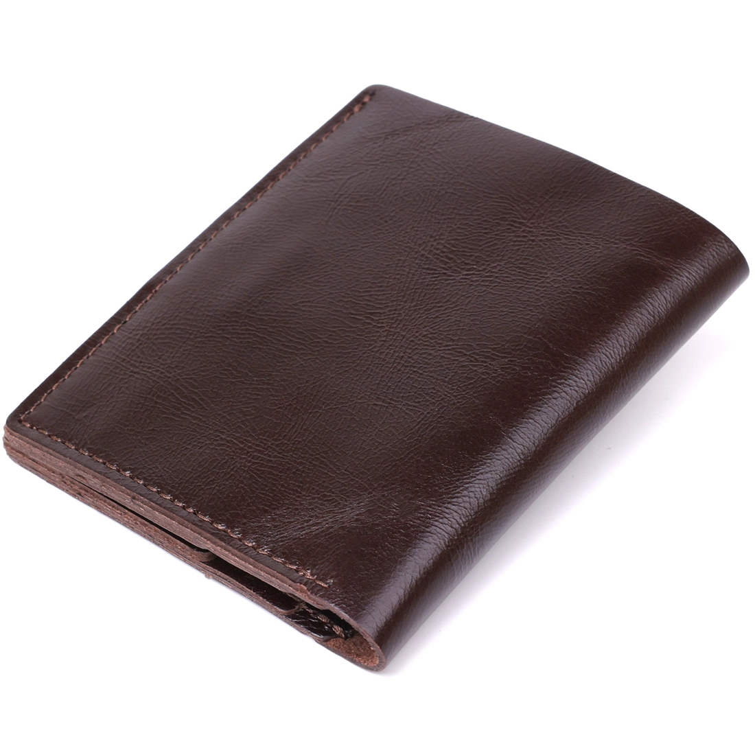 Строгое мужское портмоне в насыщенном коричневом цвете от украинского производителя. Материал – натуральна кожа высокого качества и повышенной износоустойчивости. Внутри расположено просторное основное отделение для купюр и слоты для пластиковых карточек. Фактура аксессуара – гладкая и очень приятна на ощупь.