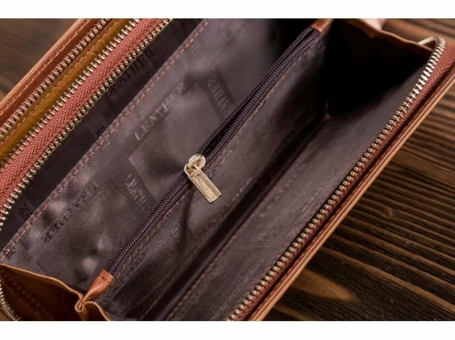 цвета. По краям аксессуар прошит рыжей нитью. В барсетку можно