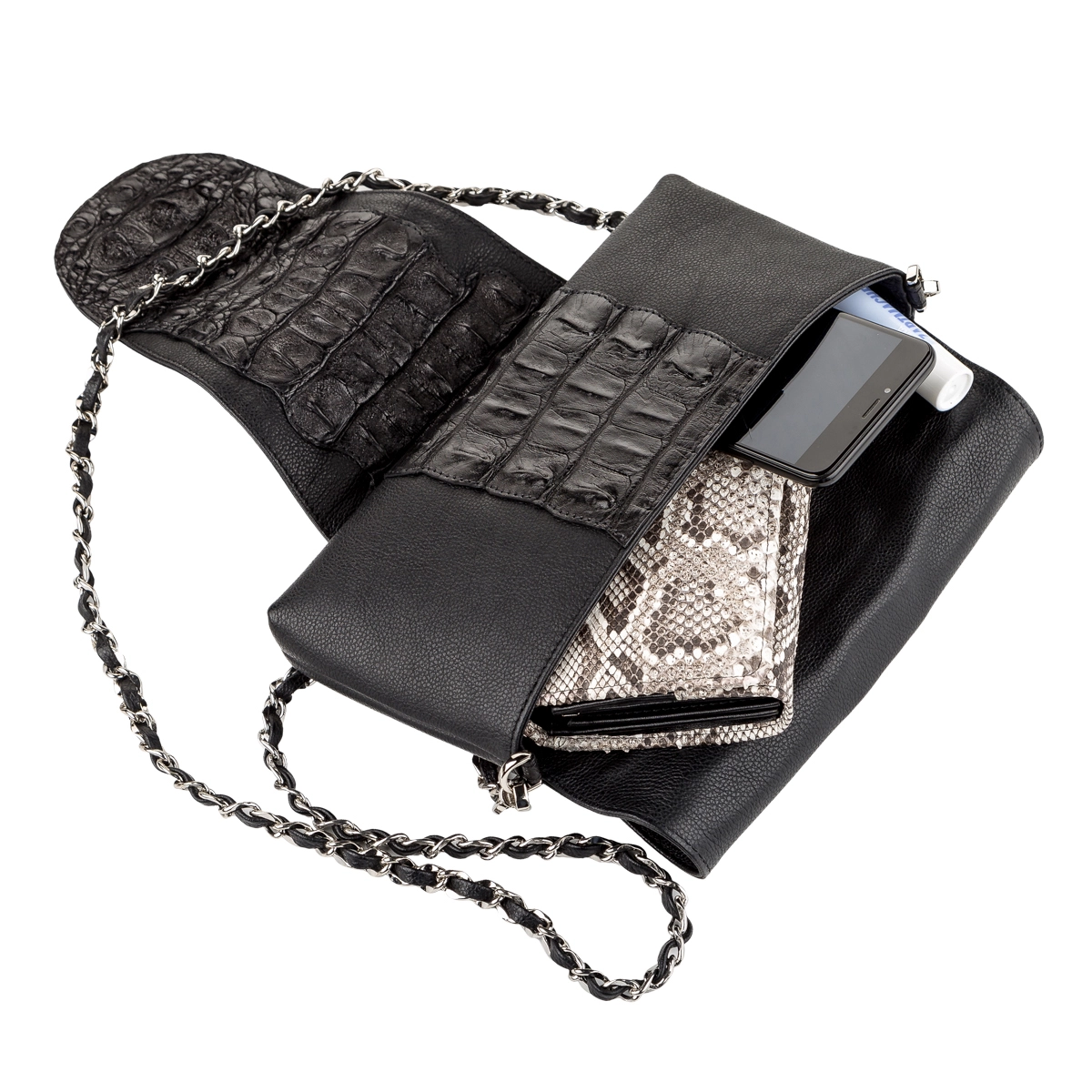 большой объемной вставкой из натуральной кожи крокодила по всей