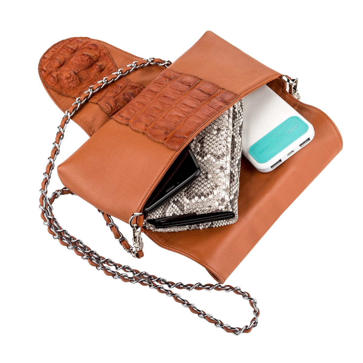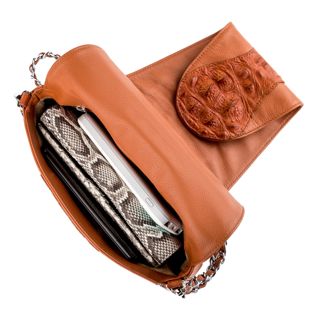 кожи, с большой объемной вставкой из натуральной кожи крокодила по