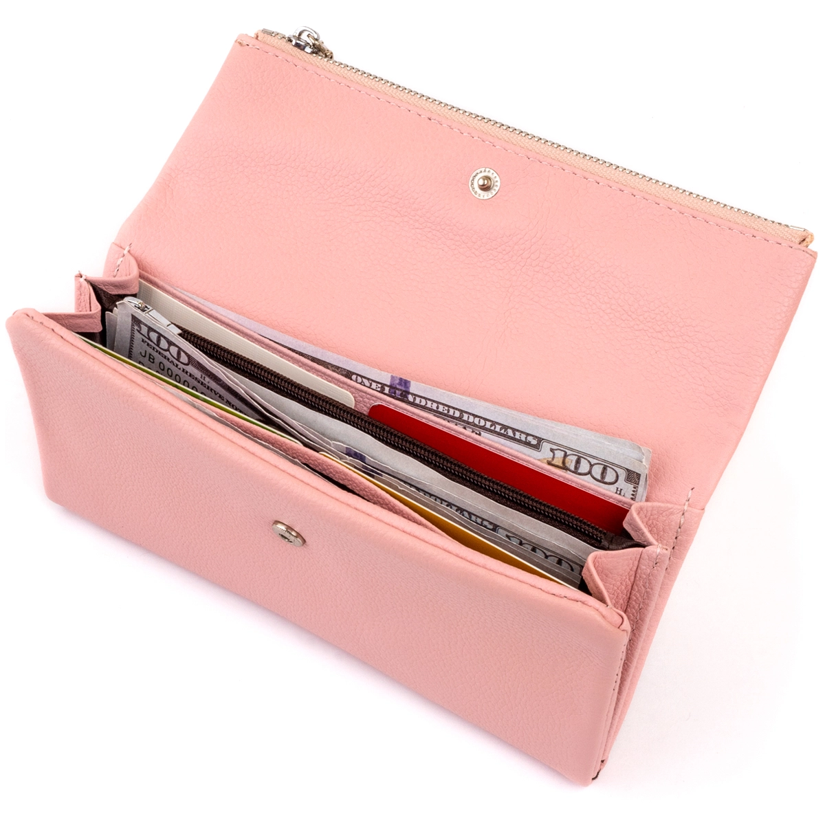 Клатч в виде конверта очень практичен и универсален. Нежный розовый
