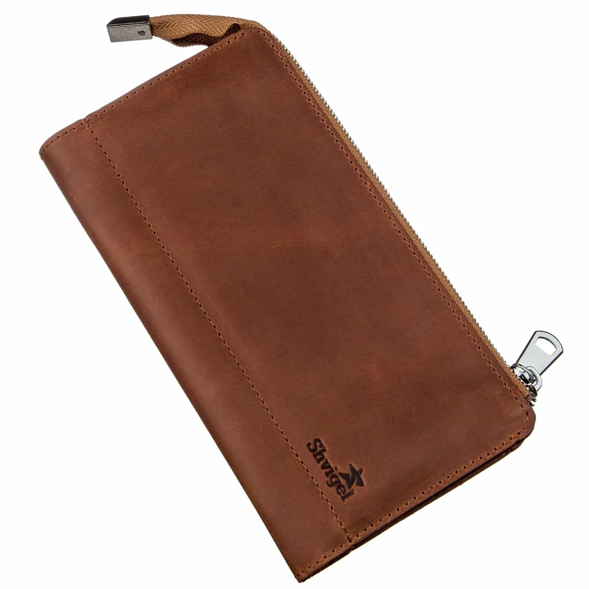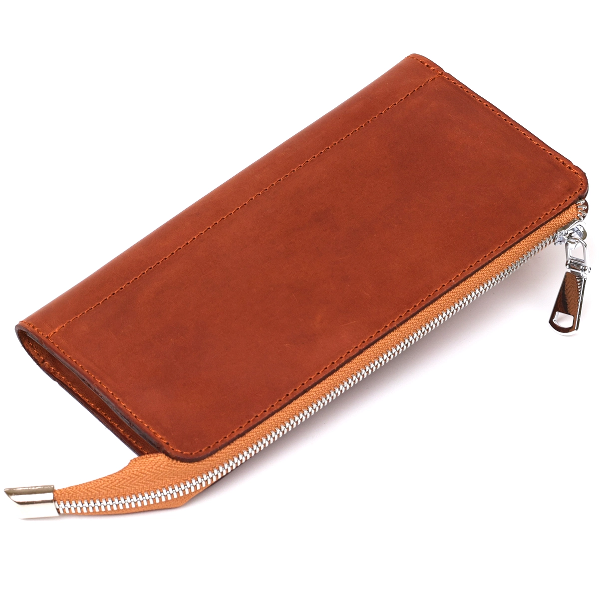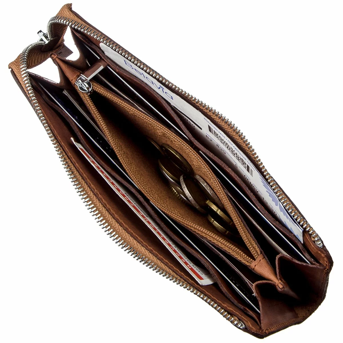 Добротный клатч из натуральной кожи Crazy horse. Данный тип кожи отличается своим эффектом старины, за который его так любят клиенты. Во время эксплуатации на винтажной коже появляются царапины и потертости, которые и создают любимый эффект. Аксессуар выглядит солидно и дорого. Вы можете заменить клатчем барсетку. Модель удобно лежит в руке. Дополнено изделие крепкой фурнитурой серебристого цвета. Застегивается аксессуар на молнию. Такой клатч станет желанным подарком для его обладателя. Изделие подойдет как для мужчины, так и женщины.