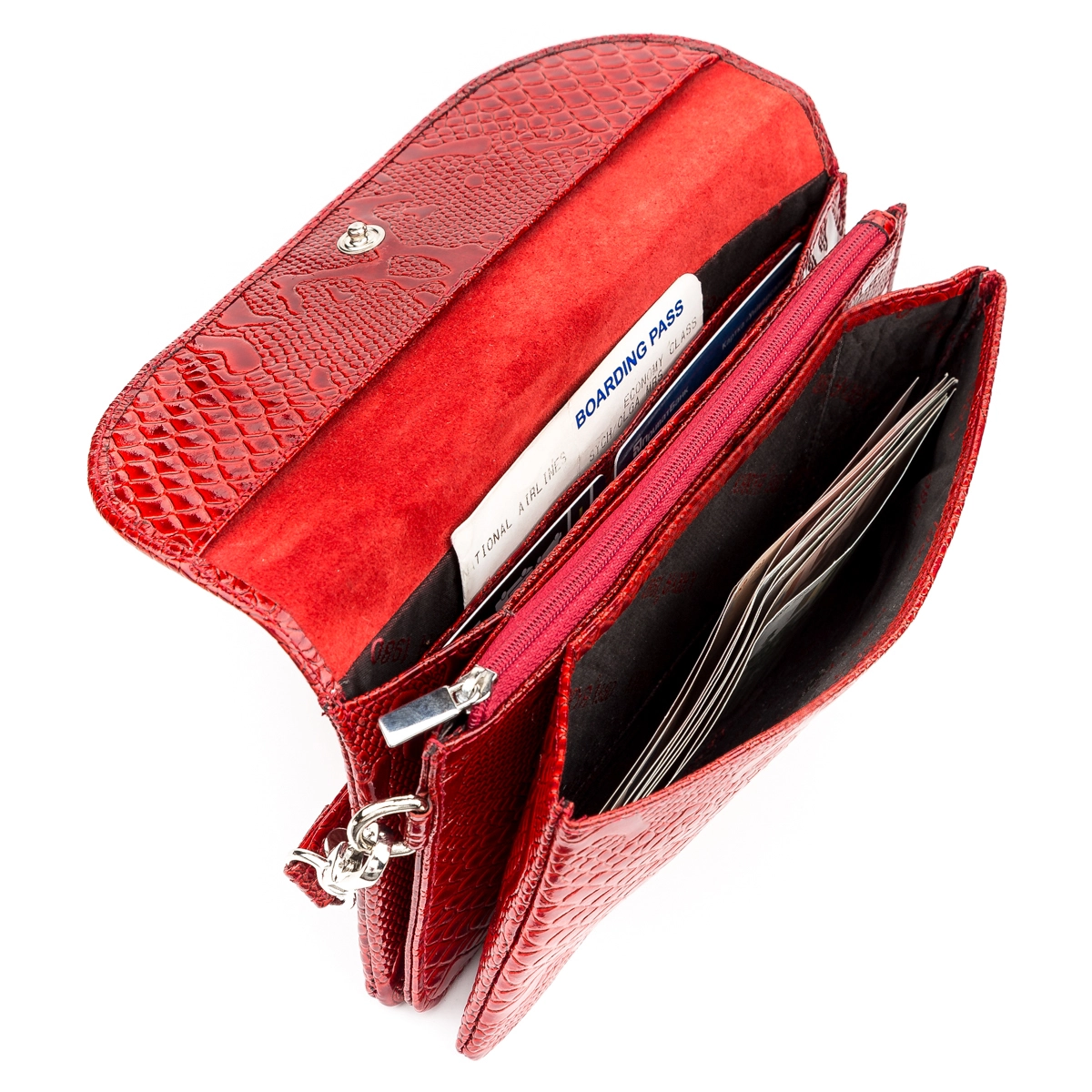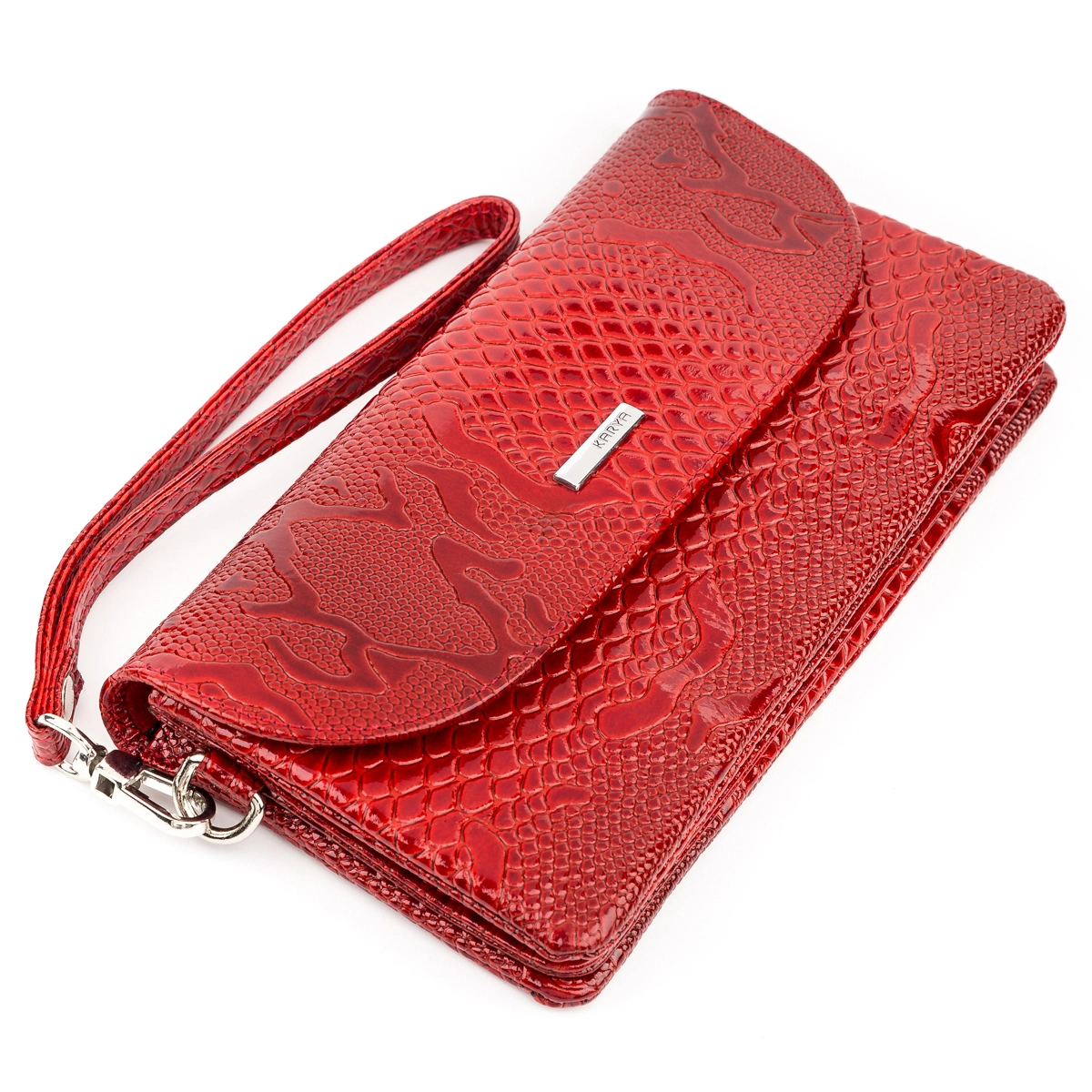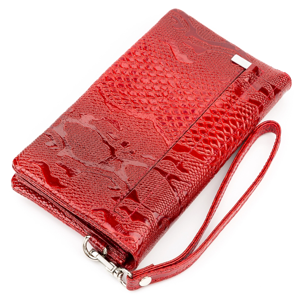 Оригинальный кошелек-клатч красного цвета, из натуральной кожи