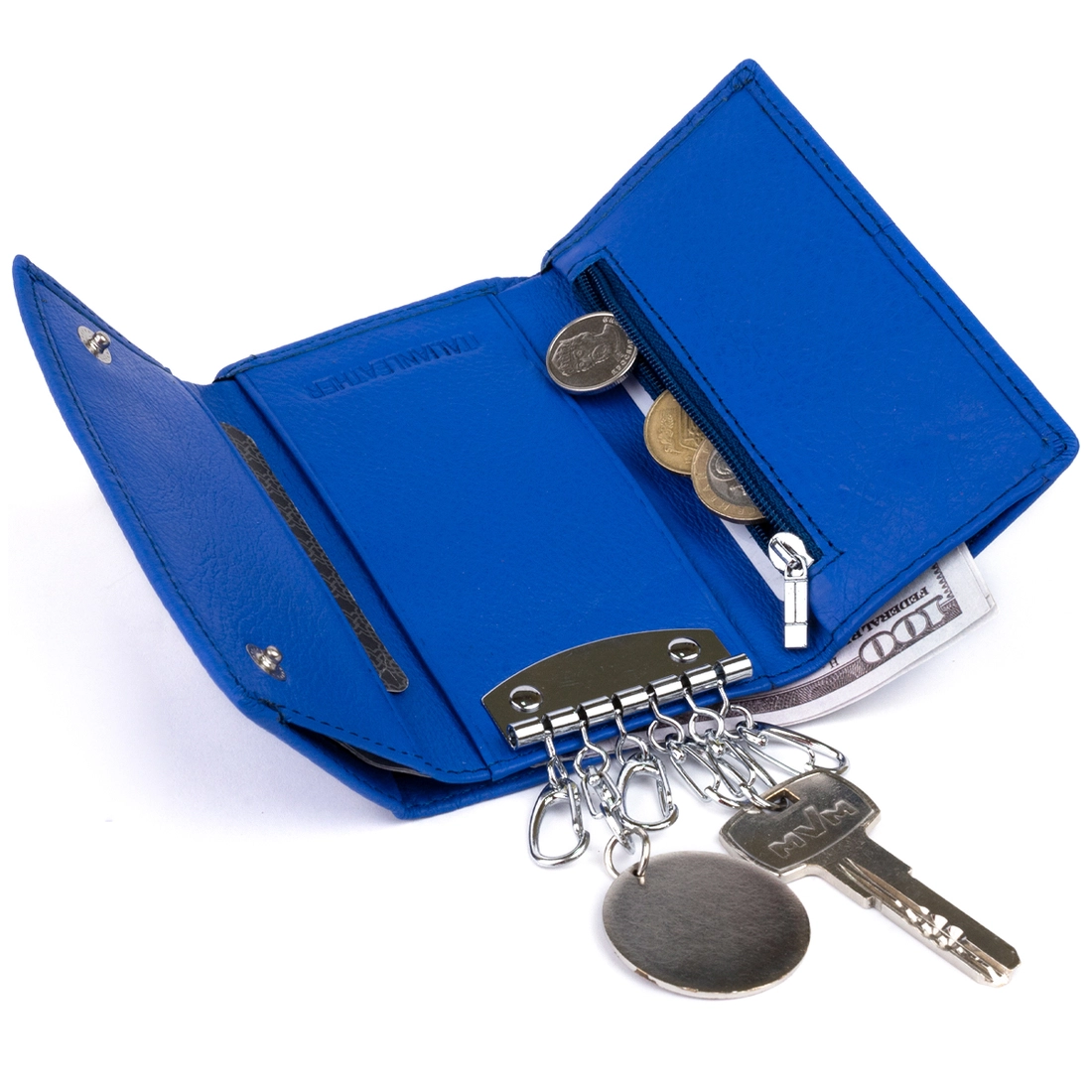 кожи высокого качества яркого и насыщенного синего цвета. Ключница
