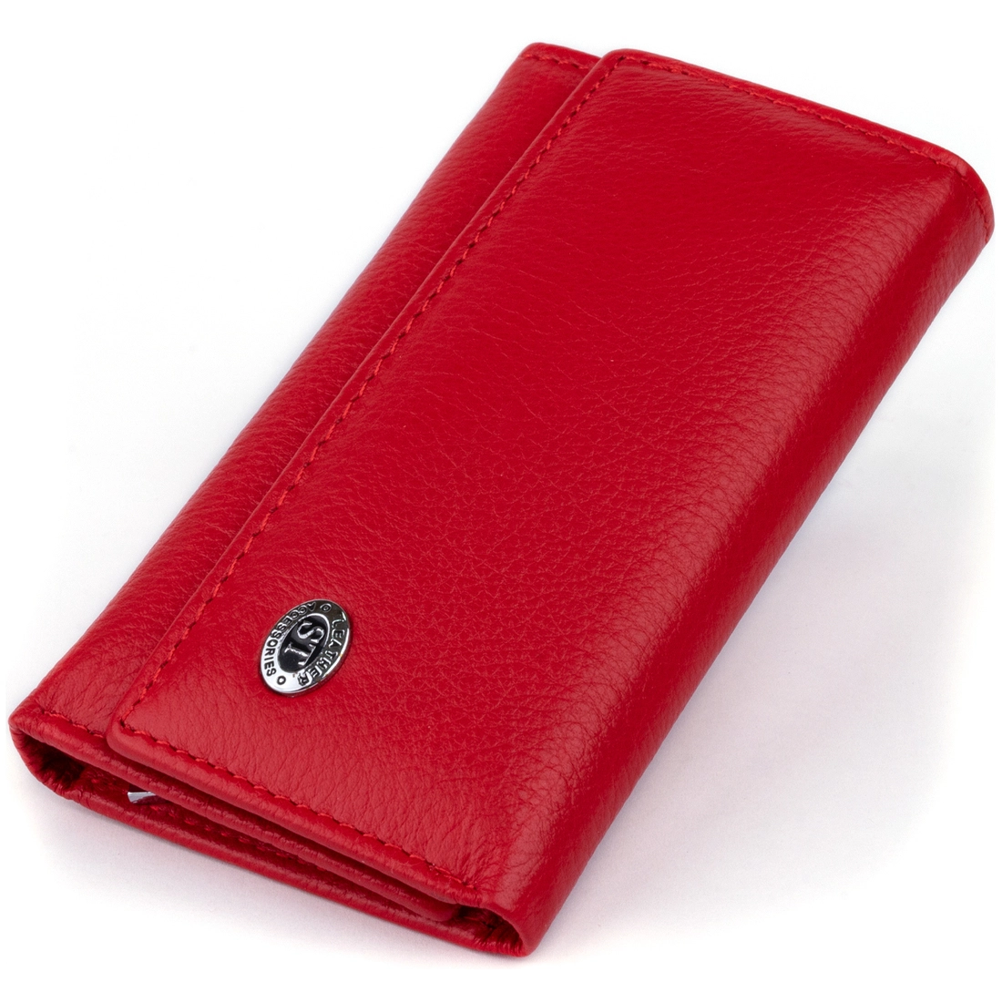 Яркий кошелек-ключница из натуральной кожи красного цвета. Изделие