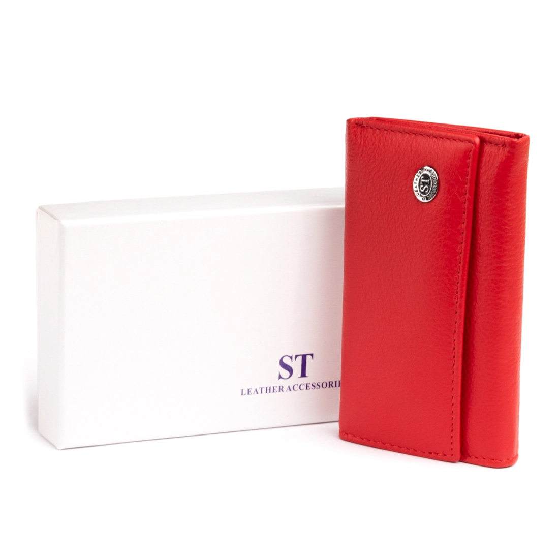 Яркий кошелек-ключница из натуральной кожи красного цвета. Изделие