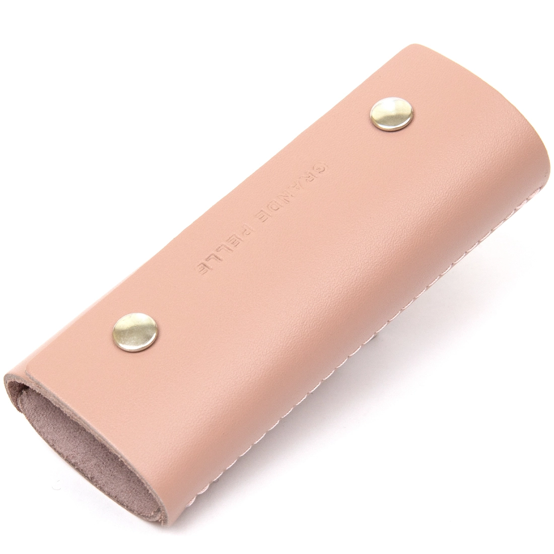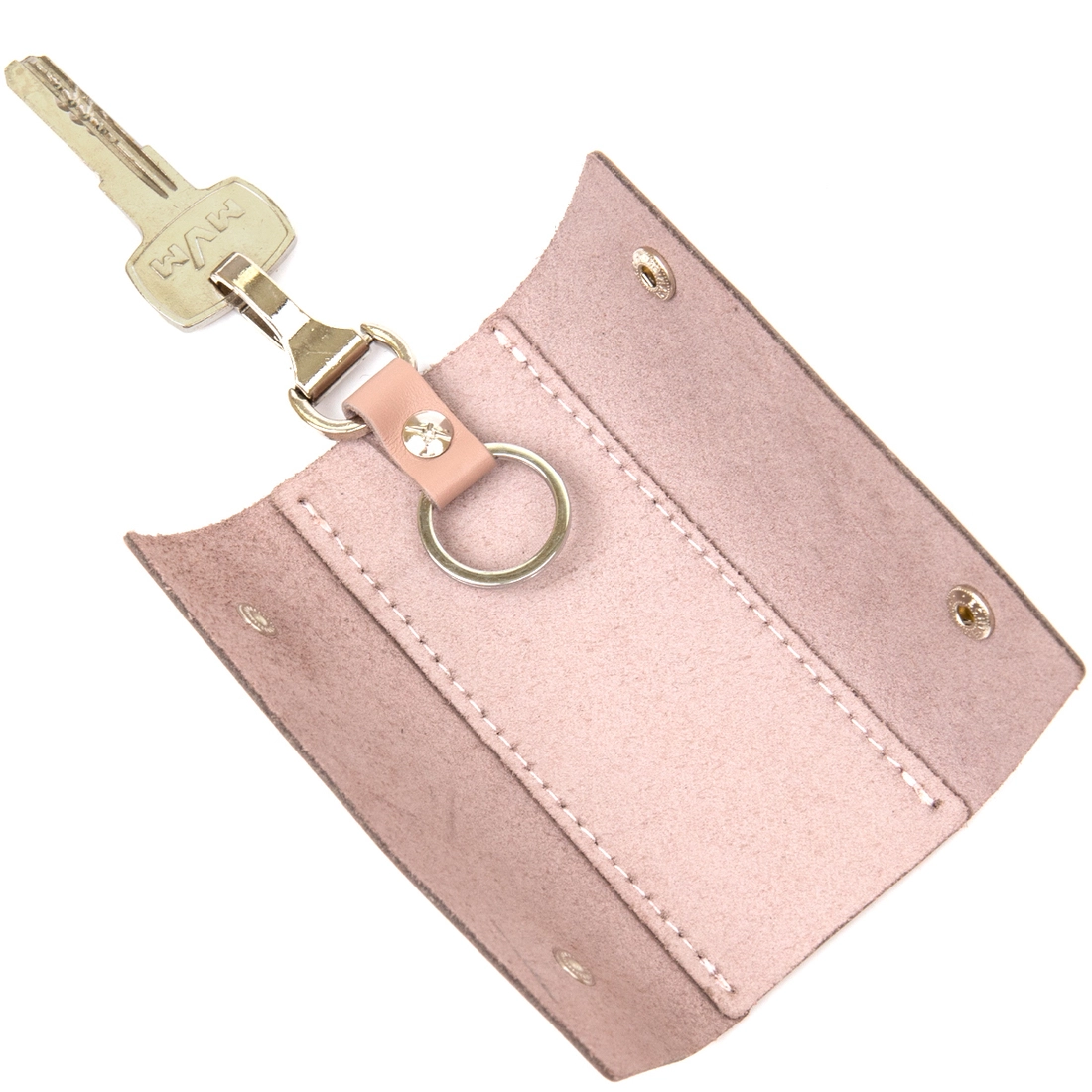 Красивая бледно-розовая ключница из натуральной добротной кожи