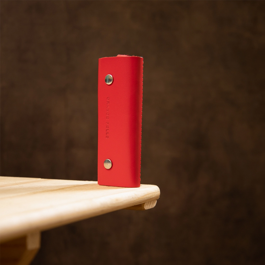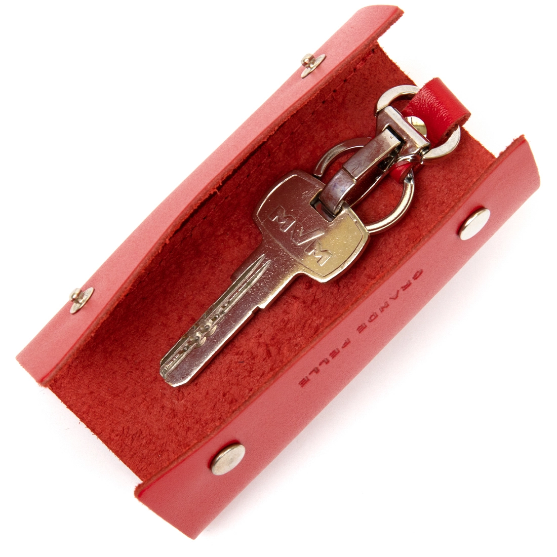 Яркая ключница от украинского бренда на кнопках. Модель из натуральной кожи. На лицевой стороне аксессуара тиснение в виде надписи бренда. Внутри ключницы кольцо и карабин для ключей. Аксессуар очень компактный и с легкостью поместится в карман или маленькую сумочку. С такой кожаной ключницей ваши карманы будут целыми, а ключи в одном надежном месте. Рекомендуем данную модель в качестве подарка себе или своим близким и друзьям.
