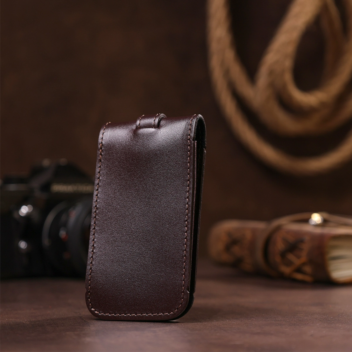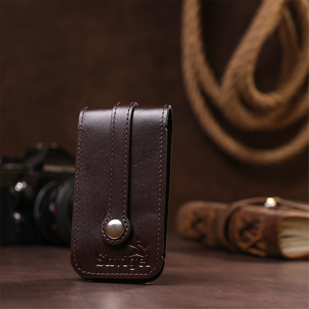 кожаный хлястик с кнопкой. Ключница приглушенного коричневого цвета